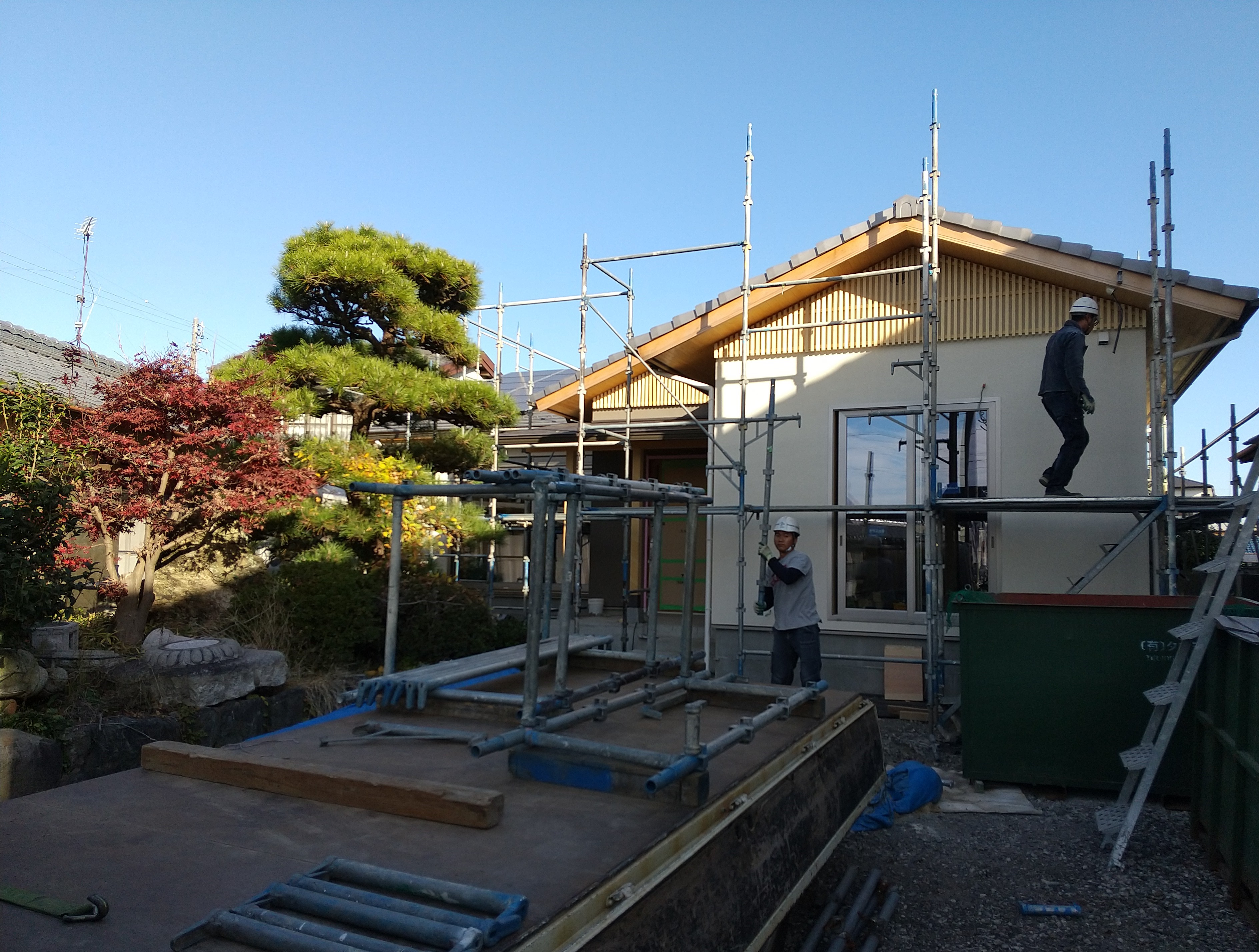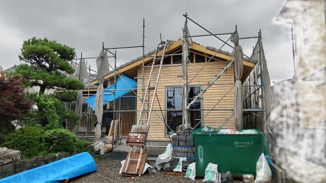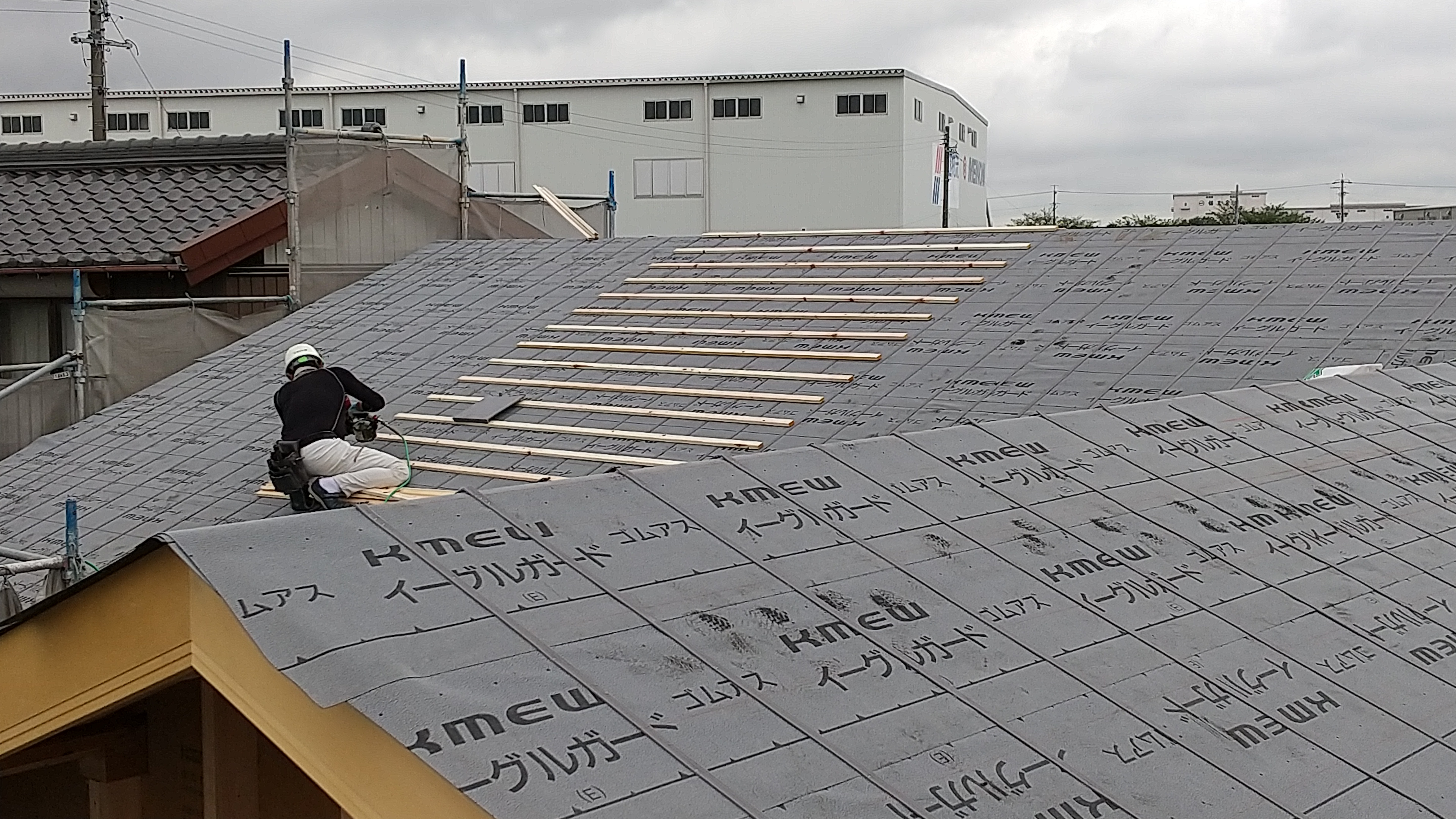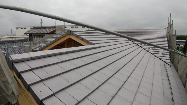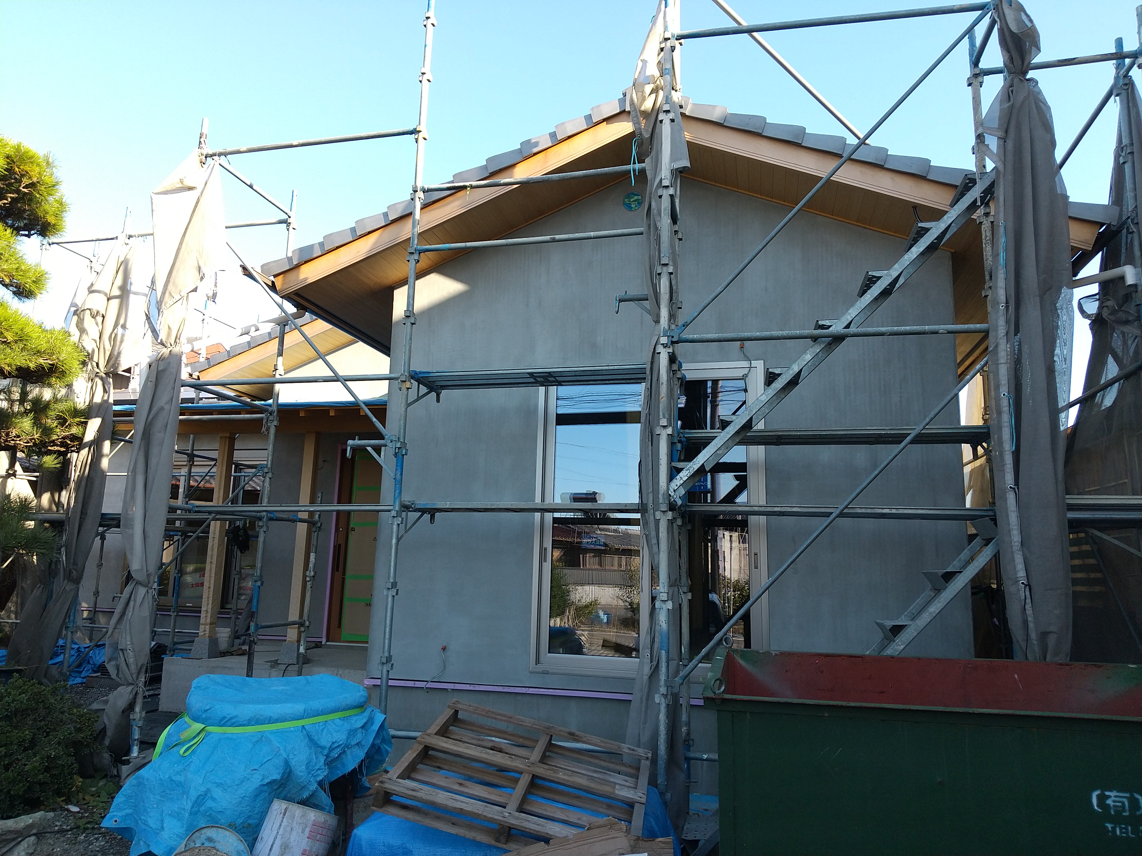 昨日に続き今日は雨も降らず、作業しやすいお天気でした。瓦屋さんも作業が捗り、もう直ぐ屋根が葺き終えれそうです。