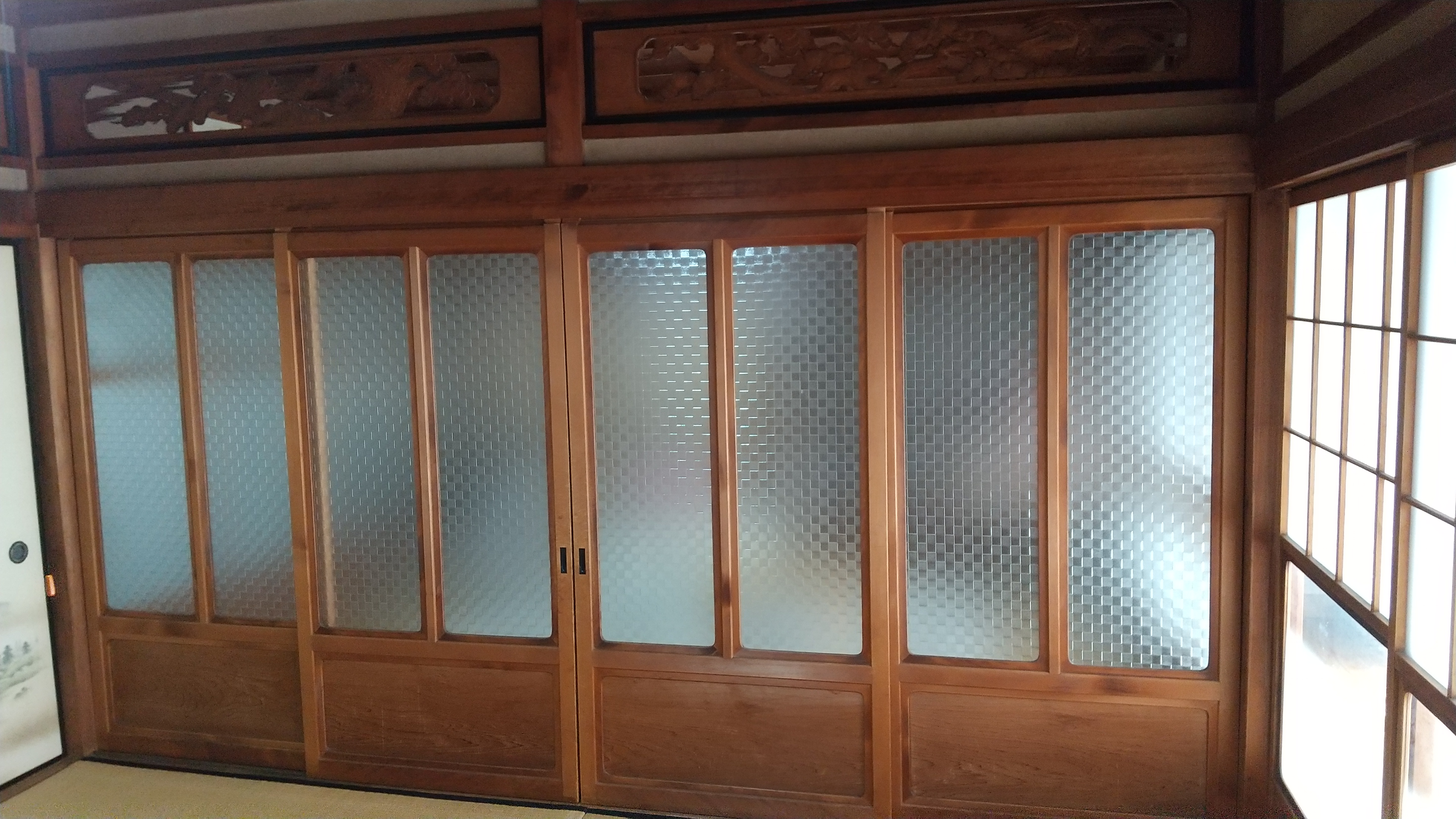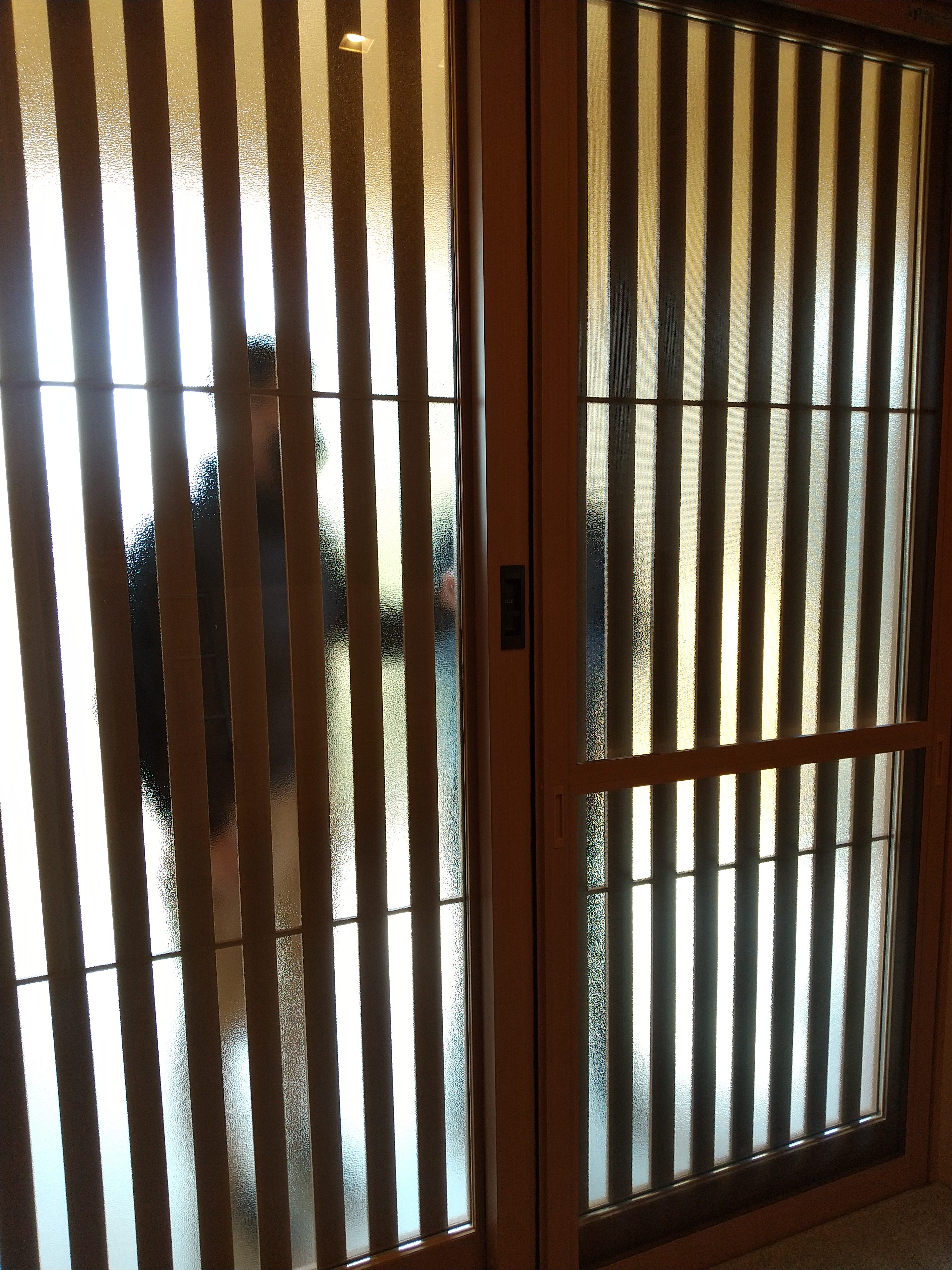 市松模様の型板ガラスの扉。レトロでどこか懐かしかったので思わずパシャリ。昭和の時代は、いろんな型板ガラスがありました。当時の気泡の入った透明ガラスも、今ではデザインガラス。現在のきれいなガラスも外を見るときには良いですが、中を間仕切る建具には温かみを感じるガラスもいいですね。壊してしまうのは勿体ない~どなたか、引き取り手は居ないでしょうか?と思ってしまいます。