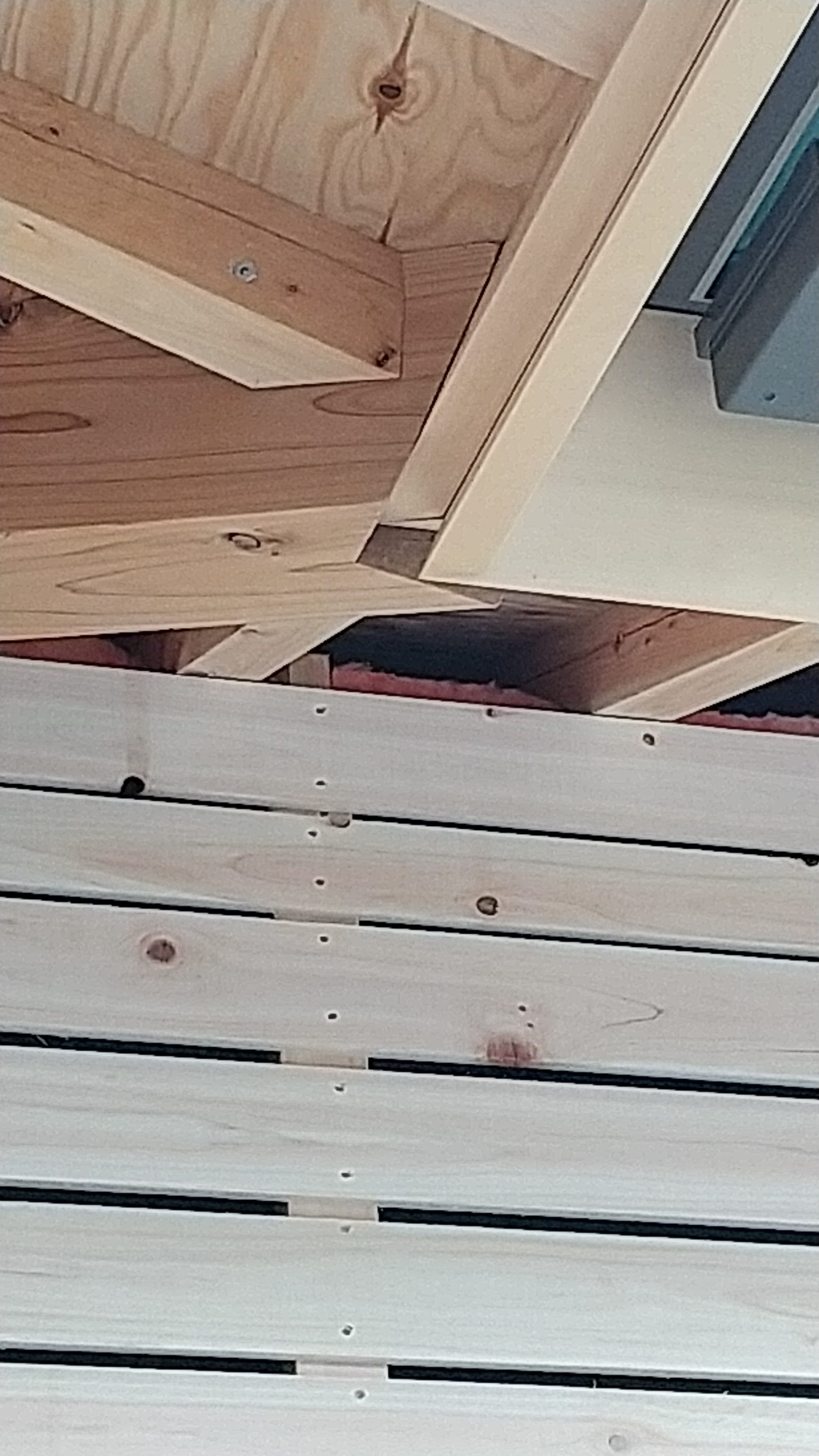 車庫の軒裏には、玉ねぎを掛けるための竿も設置されました。これで、玉ねぎが北側の涼しい風に当たって長持ちしますね👍