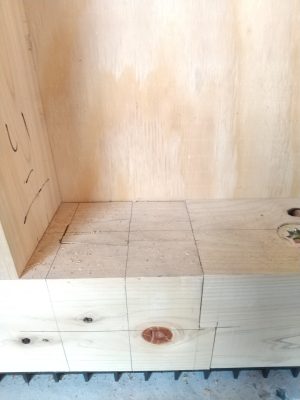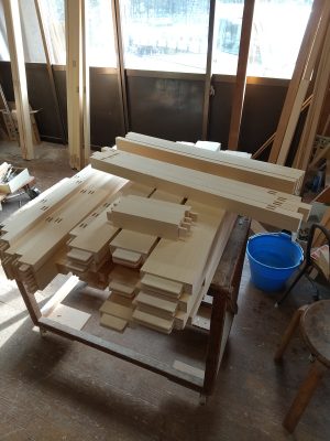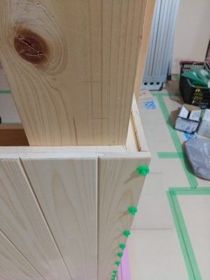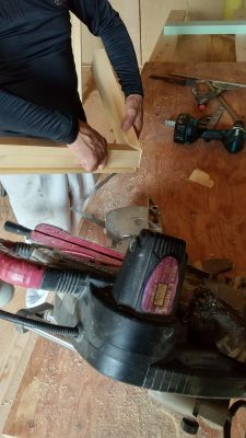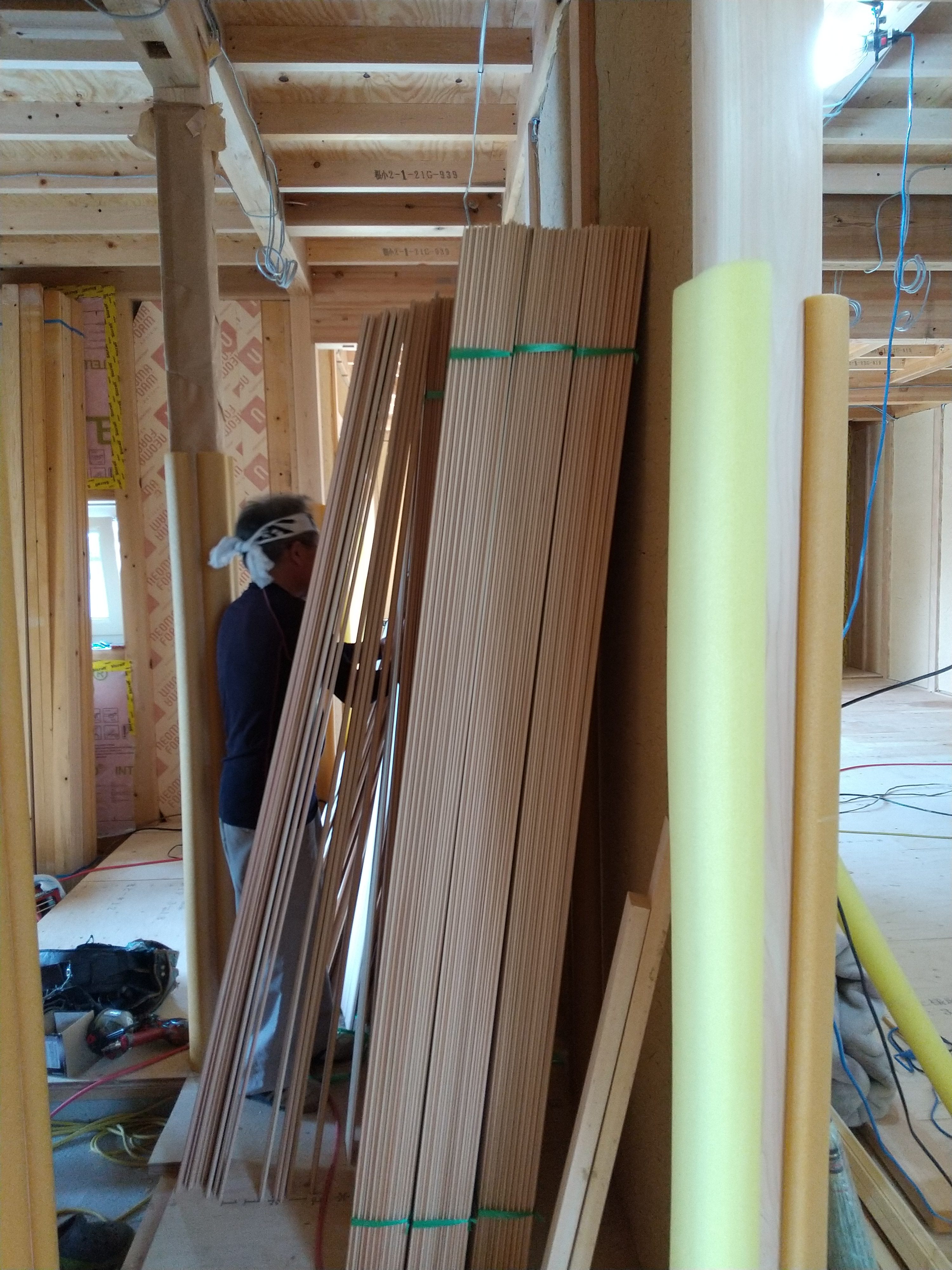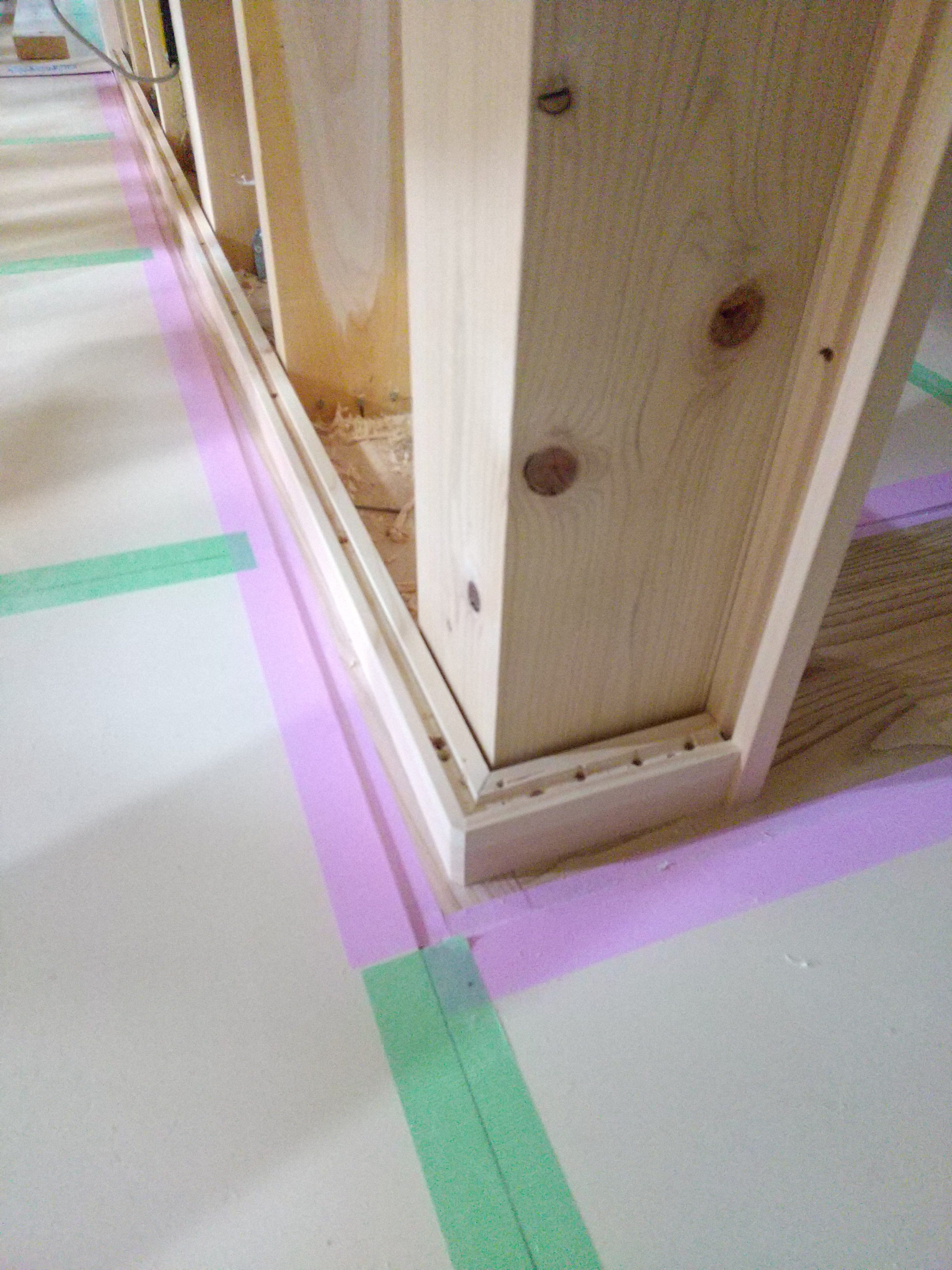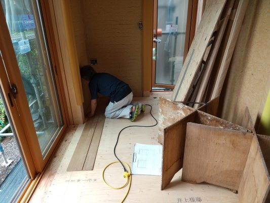 ゴミを拾っていると、sw大工さんに窓台下の間柱を木槌で入れてみてと、木槌をお借りしやってみました。上下交互に木槌を打ち、3本の間柱を嵌める事ができました。今日はもれなく筋肉痛ですが、楽しかったです。