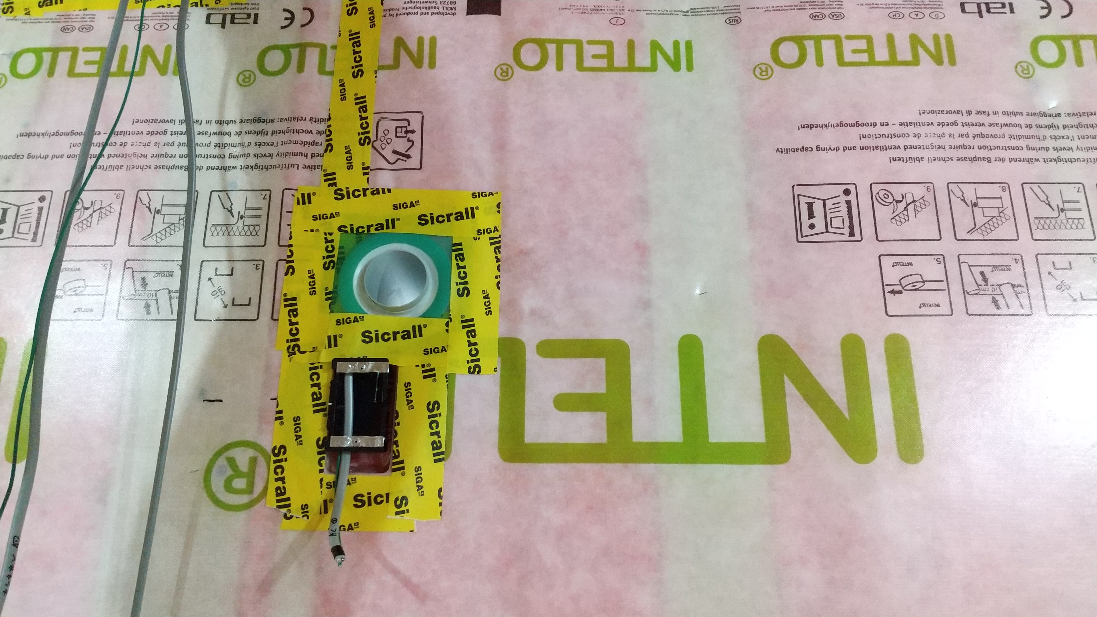 a監督はk棟梁とサッシ廻りの専用防水シートとサッシの納まりについて打ち合わせです。今はいろいろ良い物がありますね、この専用防水シートは厚手でかなり丈夫そうです。これならちょっとやそっとでは破れないですね。
