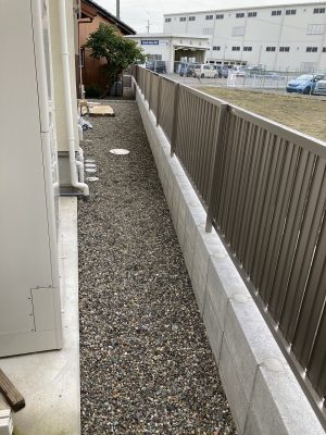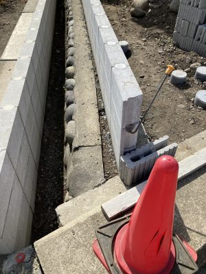 隣地との境、ハナレとの間の土留め用コンクリートブロックは積み終えています。