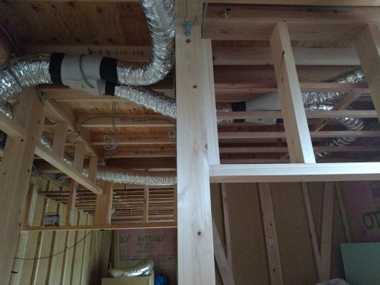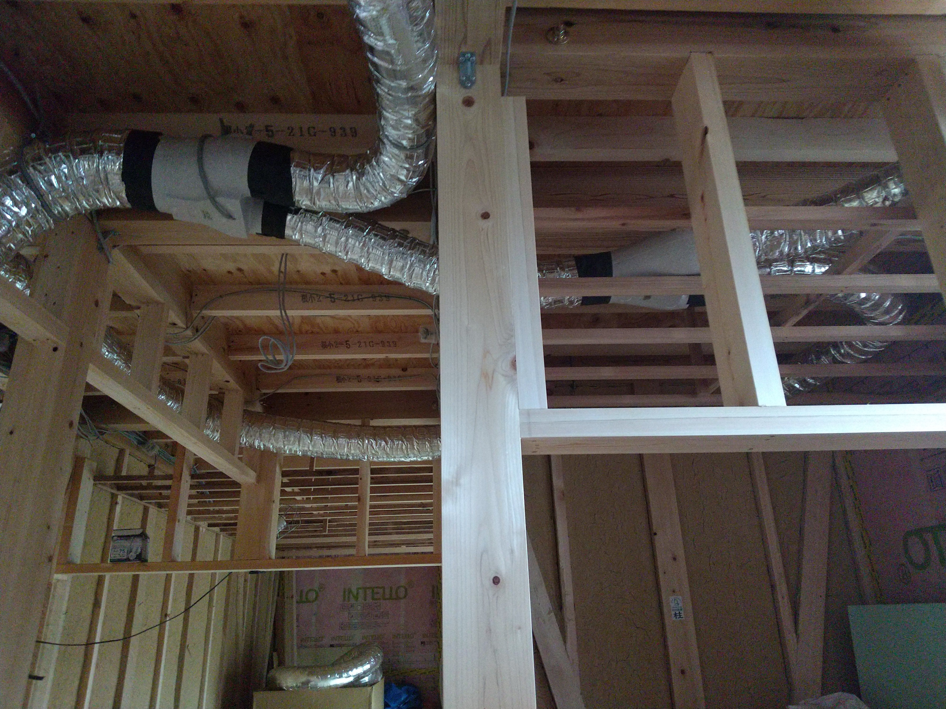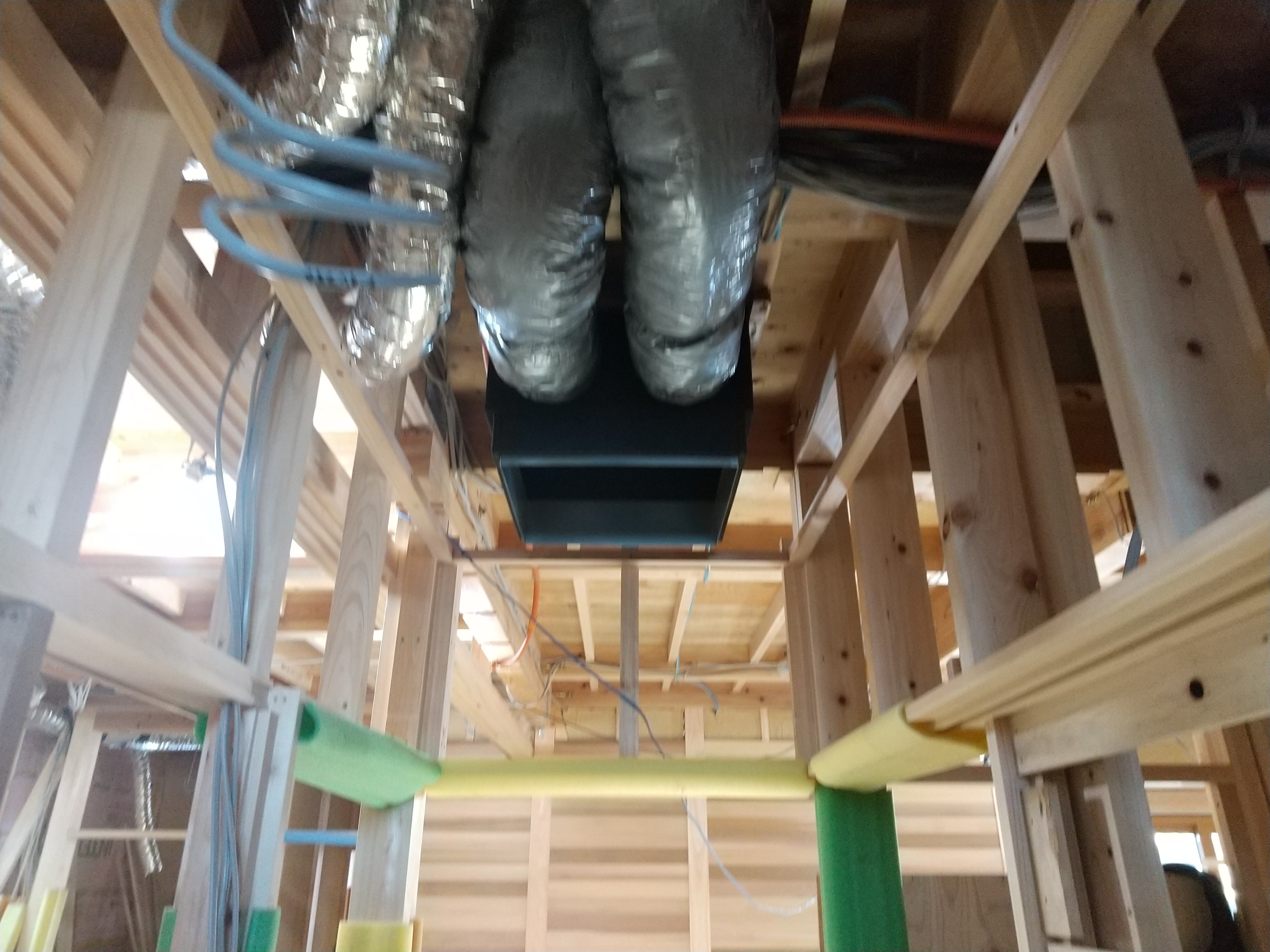 ダクト配管、補助のエアコンスリーブ部分も、h場さんがしっかり施工しています。