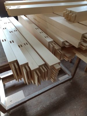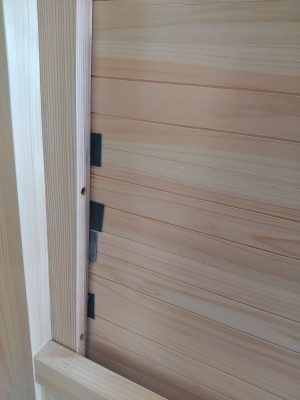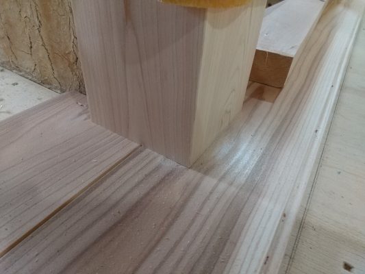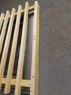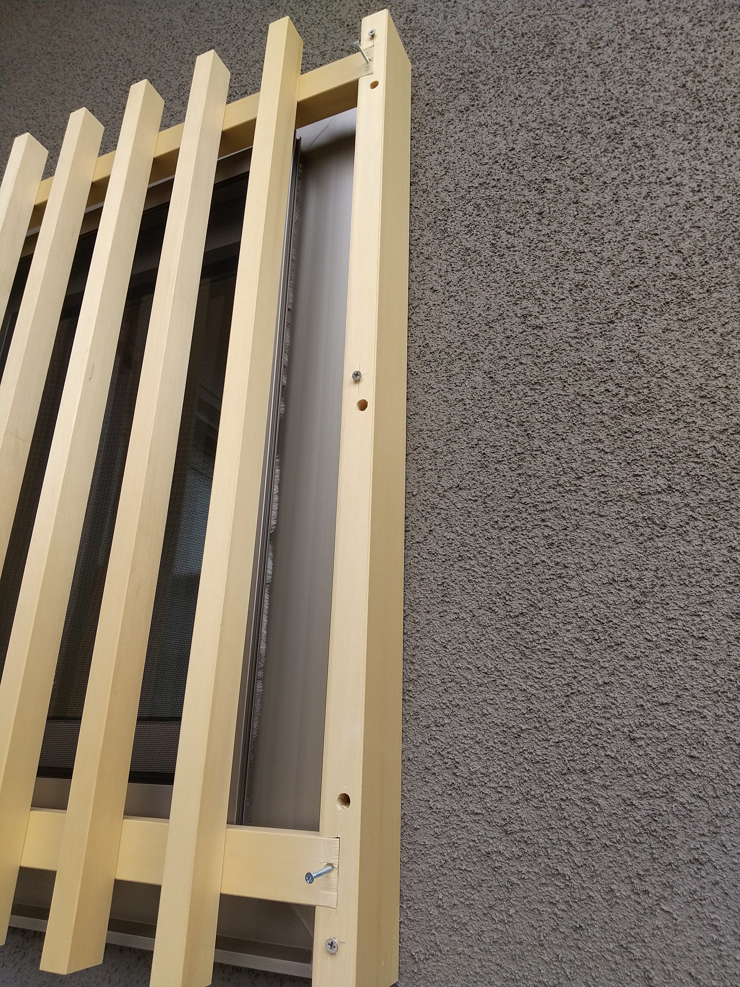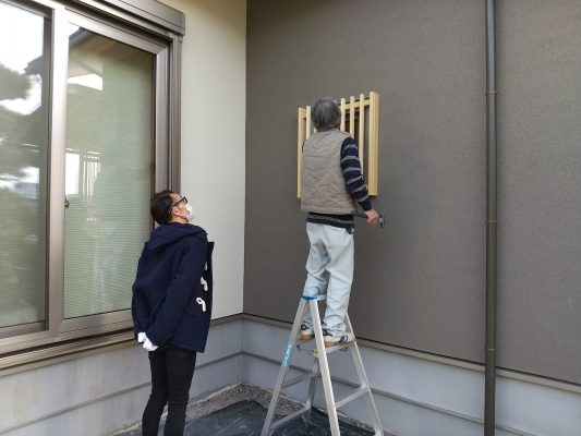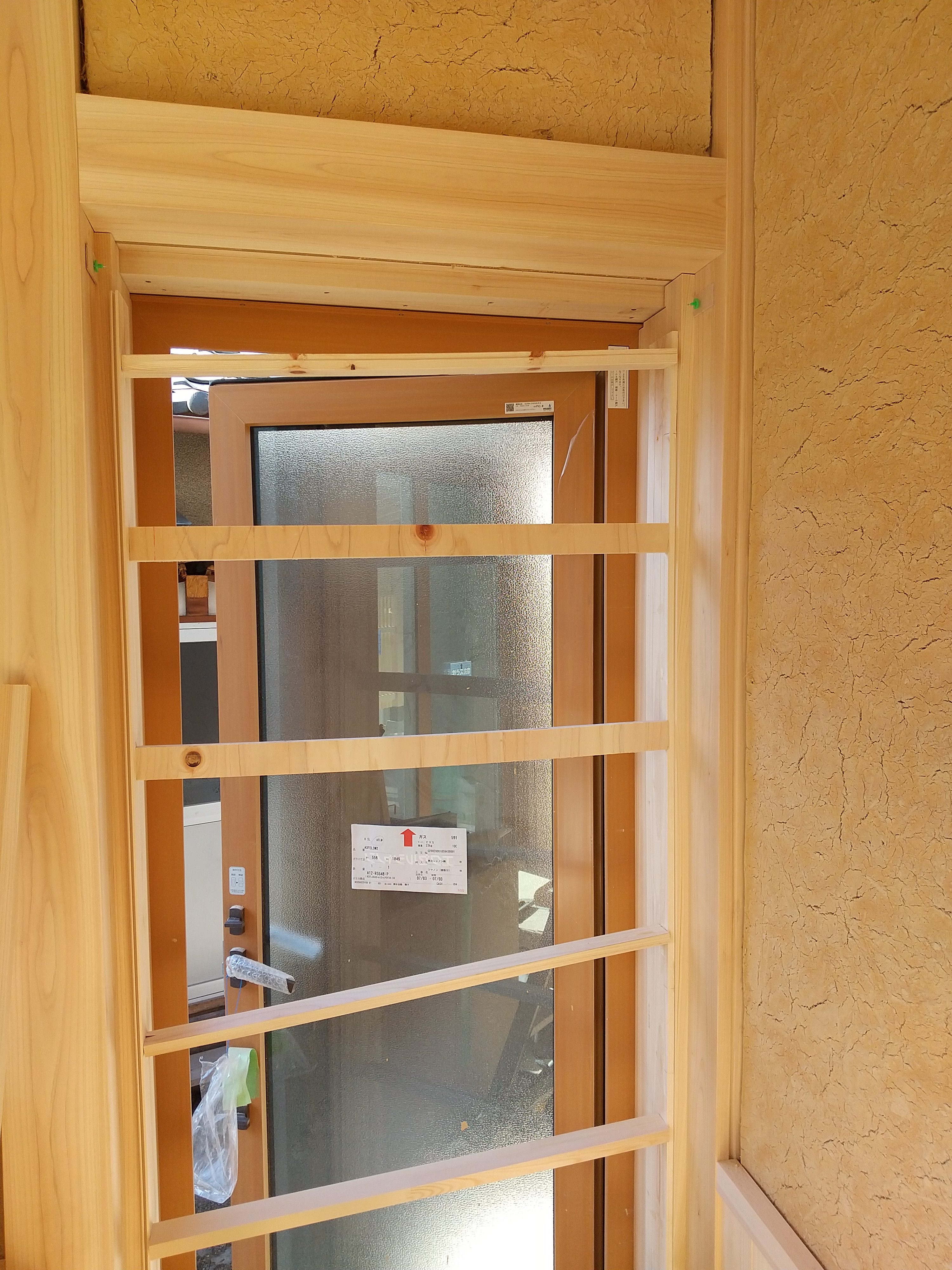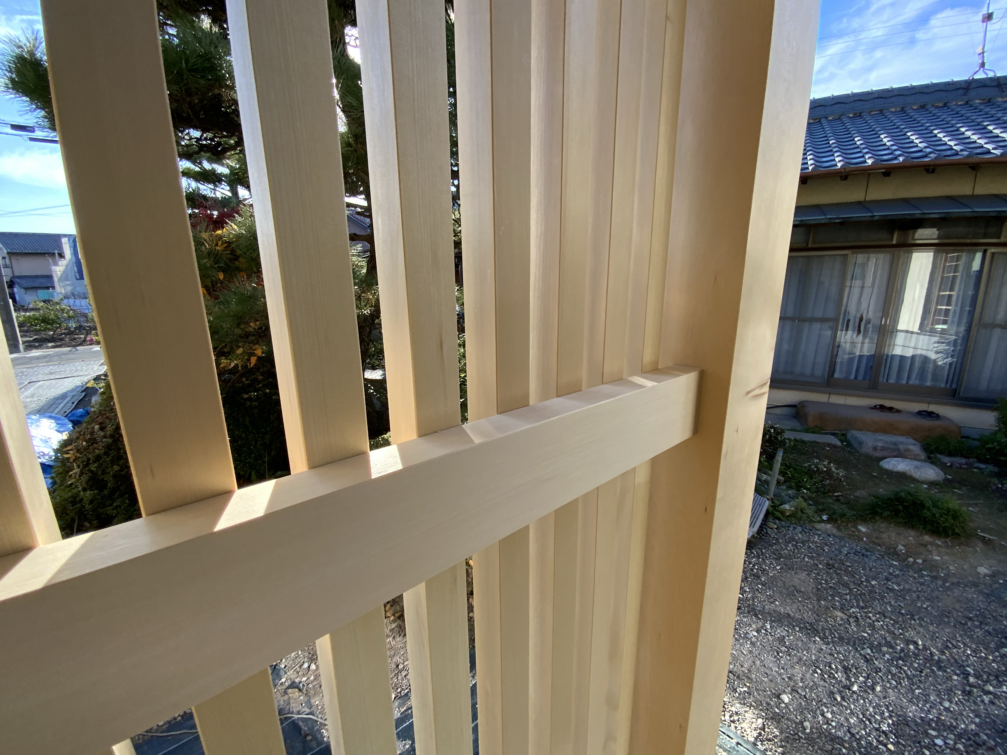 網戸の設置の為に外されていた木製面格子。k棟梁の裏技を拝見する事ができました。