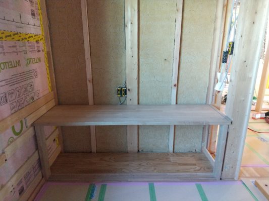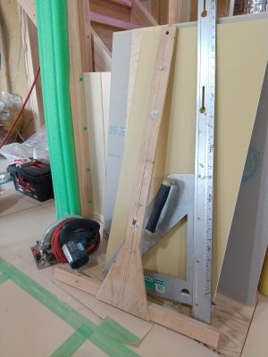 今日は、電気配線(コンセント・スイッチ・照明などの位置)の最終確認と造作棚の確認を行いました。どちらも、あらかじめ図面で打ち合わせをしますが、実際に現地で確認すると机上では気付かなかった発見があります。今回は、玄関ホールとそのホールに続く廊下の照明器具のスイッチを分けていましたが、廊下の照明はせっかく取り付けても慣れてくるとつけなくなるのではないかと言う事で、玄関の照明と一緒にセンサーで点灯するようにしました。現地でこんな確認ができるのも注文住宅の良いところだと思います。(写真はa監督が自前のキャンプセットを打ち合わせ用に用意してくれているところです)