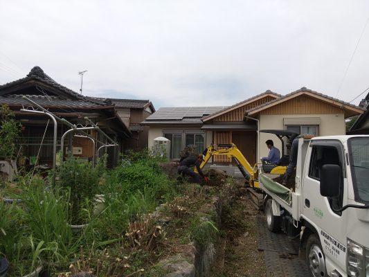 連日お天気が良く、庭の解体工事が順調良く進んでいます。