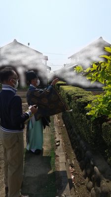 今日は、明後日からの荒壁工事の為に養生をしに行くと言うa監督と一緒にお邪魔しました。瓦工事もあと少し。棟瓦を葺くための下地を入れています。これからの時期は、フード付き長袖の空調服が欠かせないそうです。