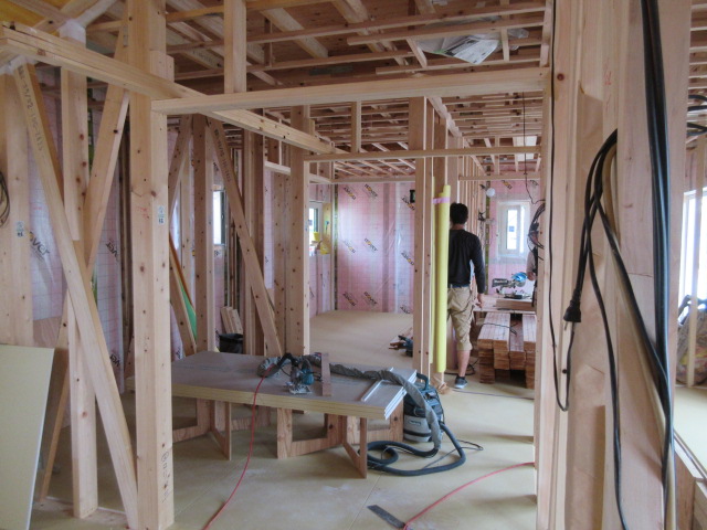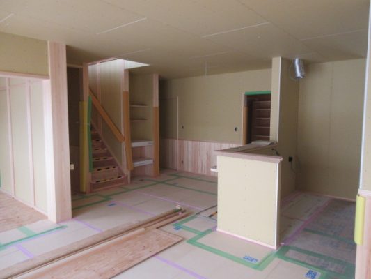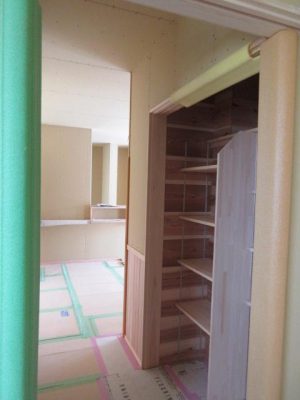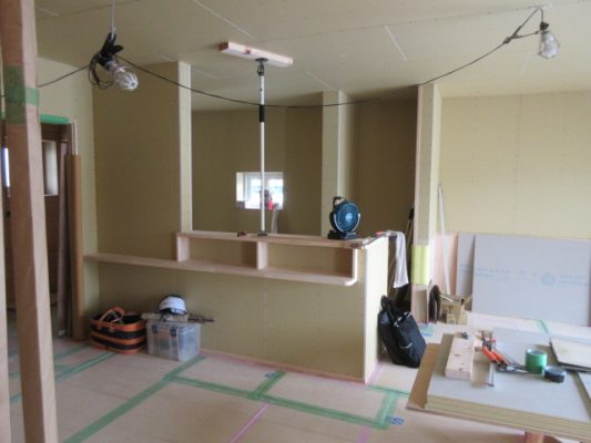 内部も着々と進んでいます。収納部も細かい打ち合わせをし、お客様の使いやすいよう造らせていただきます。