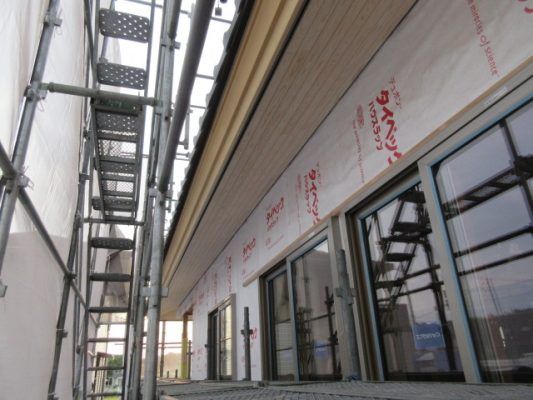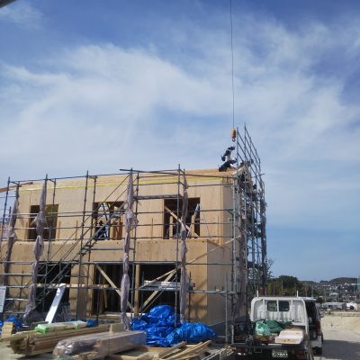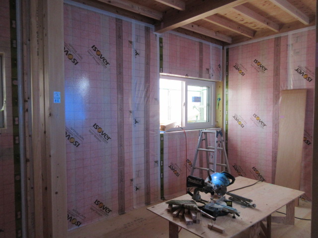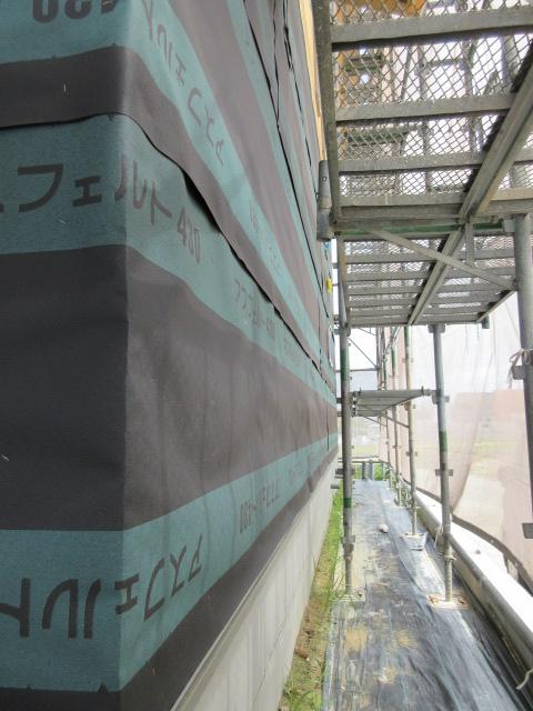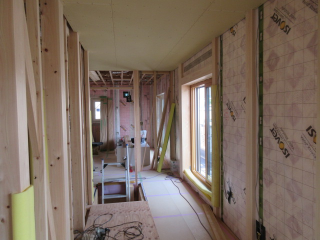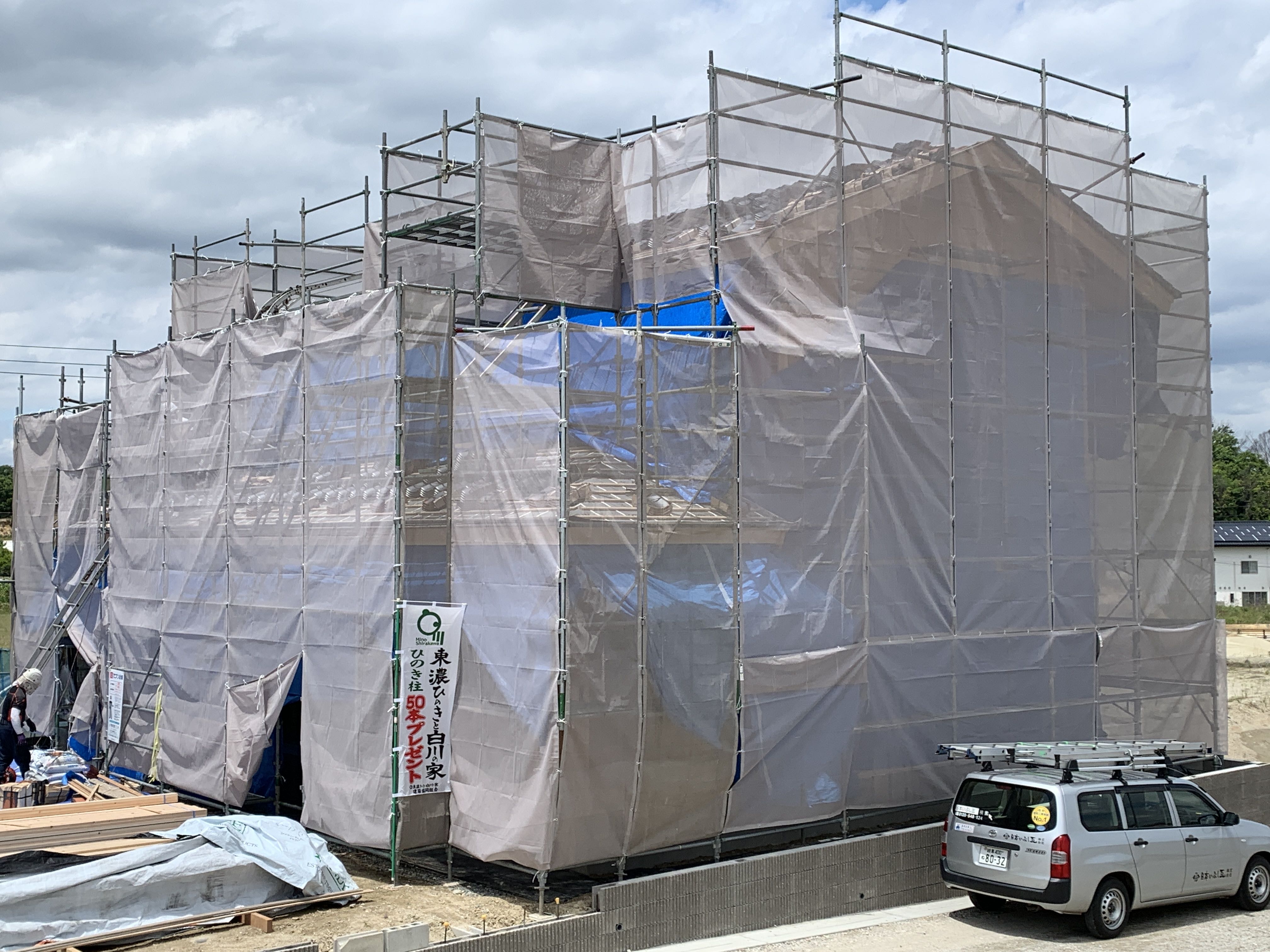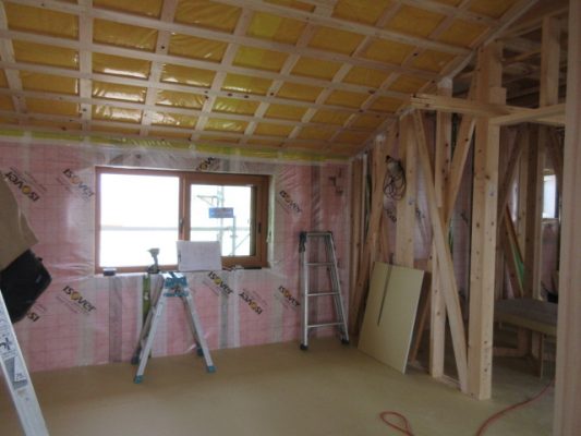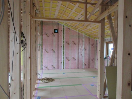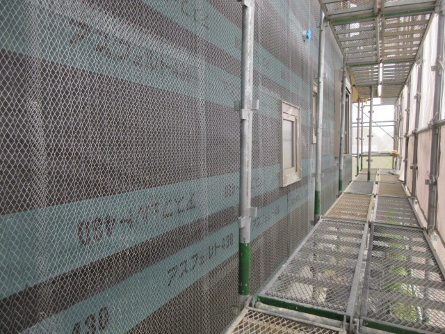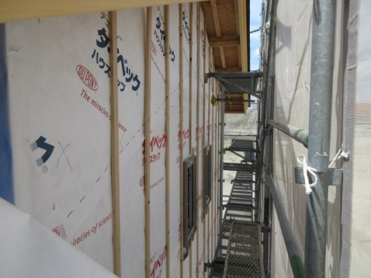 外部は通気胴縁が施されました。こちらの現場は外壁の仕上げが漆喰ですので、
