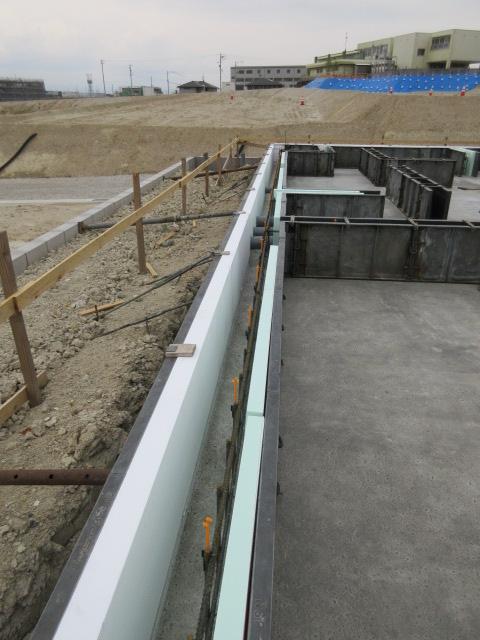 この後基礎外周1m以内の底部にも断熱材が敷かれていきます。