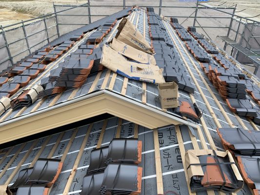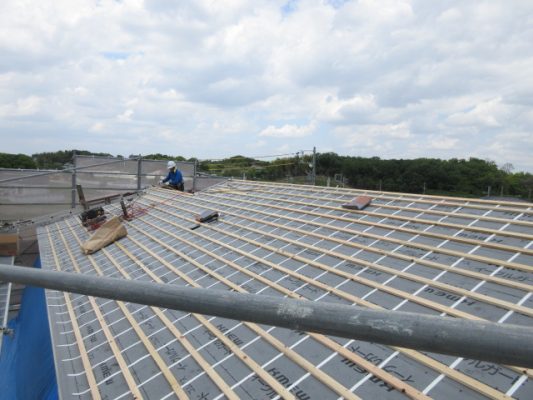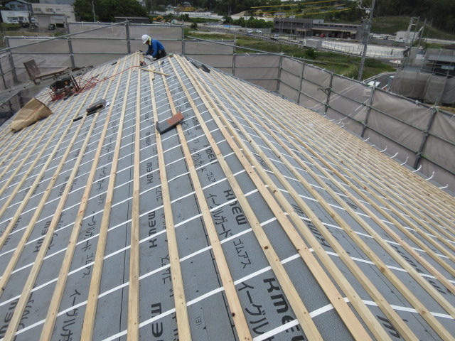 屋根はルーフィングの上に流水テープと瓦止下地が施されました。