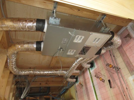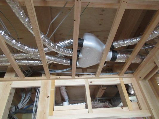 内部は熱交換器が設置されました。各居室の温度を一定にするためのダクトを這わせます。