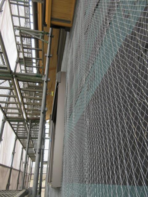 防水紙の上から全体にラス網が張られていました。この後モルタルが塗られます。