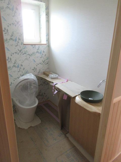 トイレカウンターの一枚板は栗材で、こちらも水に強く、硬めの樹種です。