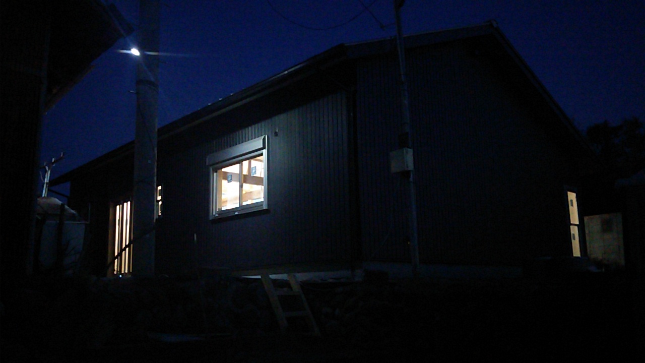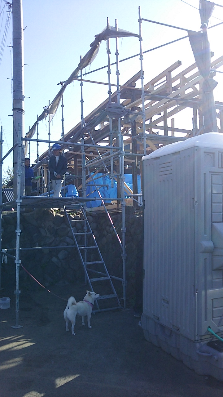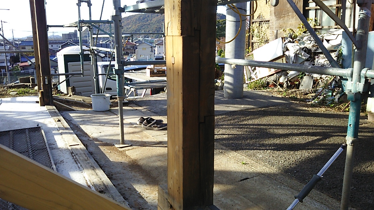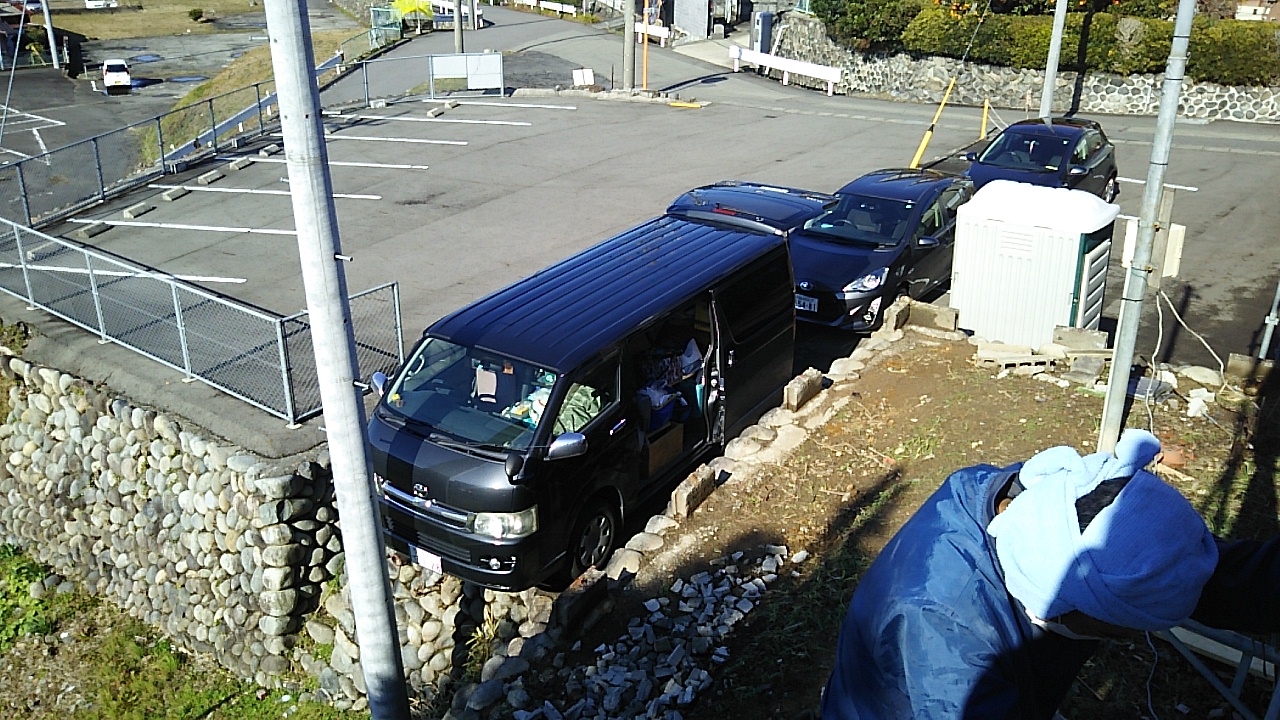 反対側から見たところ。それにしても大工さんの車両の絶妙な駐車の仕方よ。