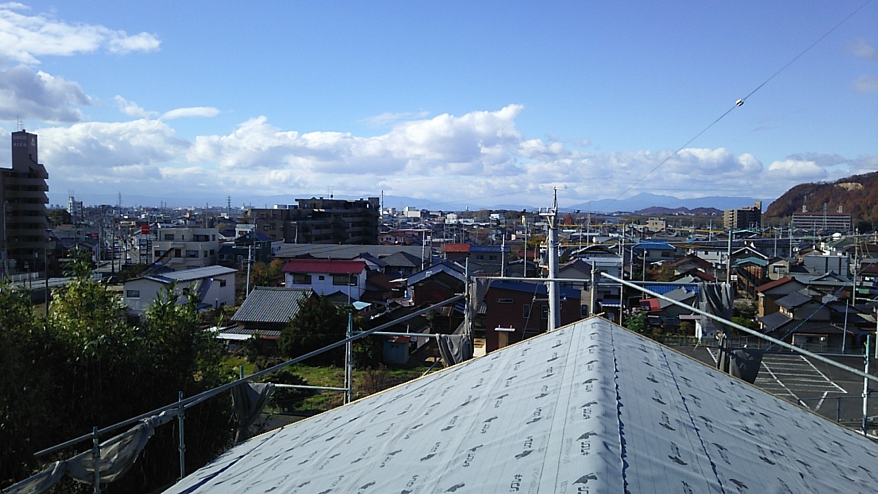 もはや屋根伏せをした時の恒例行事。棟に上って街を見渡してみました。