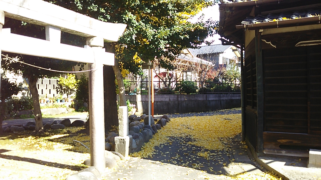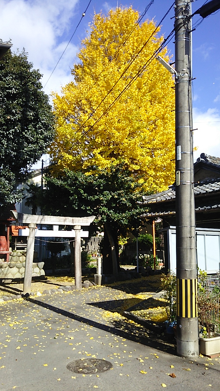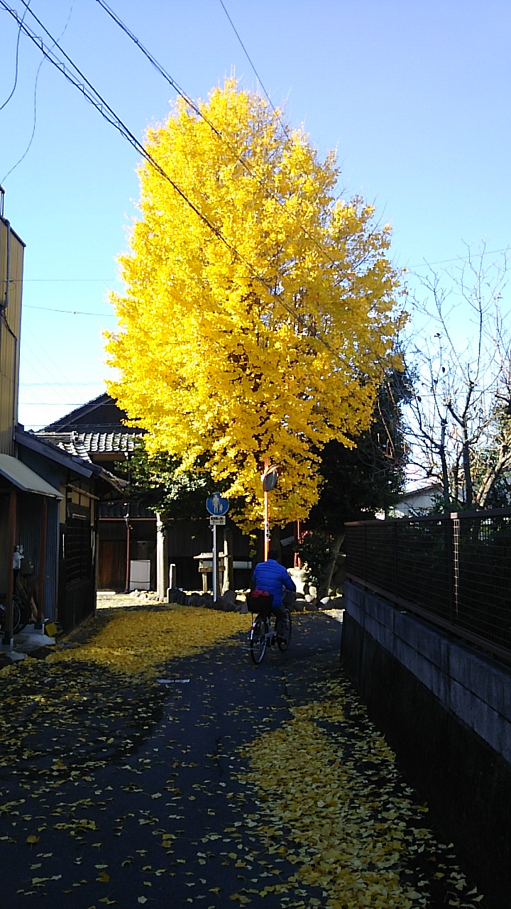 現場近くのお堂の脇に立つ大イチョウの樹。12月に入りましたが見事な紅葉(黄葉?)を見せています。