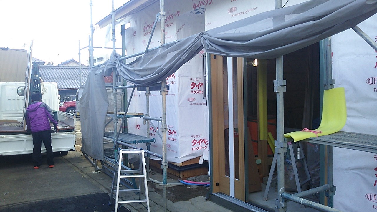 現場が高台にあるため、冬の冷たい風が容赦なく吹き付けていましたが、これで少しはブロックできます。