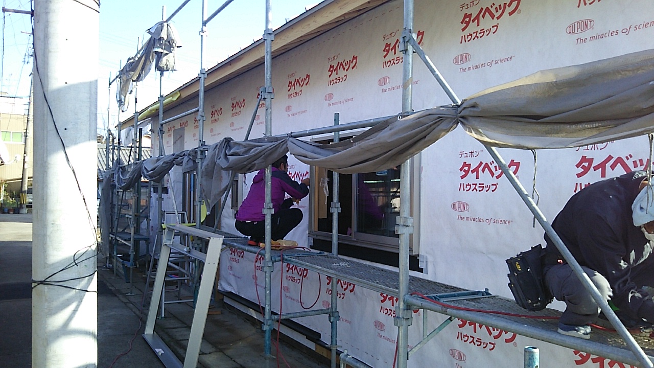 外壁工事が進んでいます。