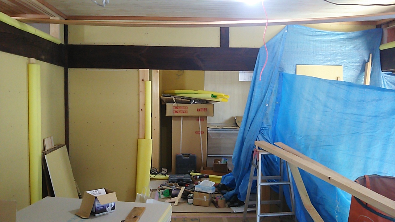厚み45㎜の高性能フェノールフォーム系断熱材。今まで土壁しかなかった事を思うと、断熱性、密閉性は格段に上がります。