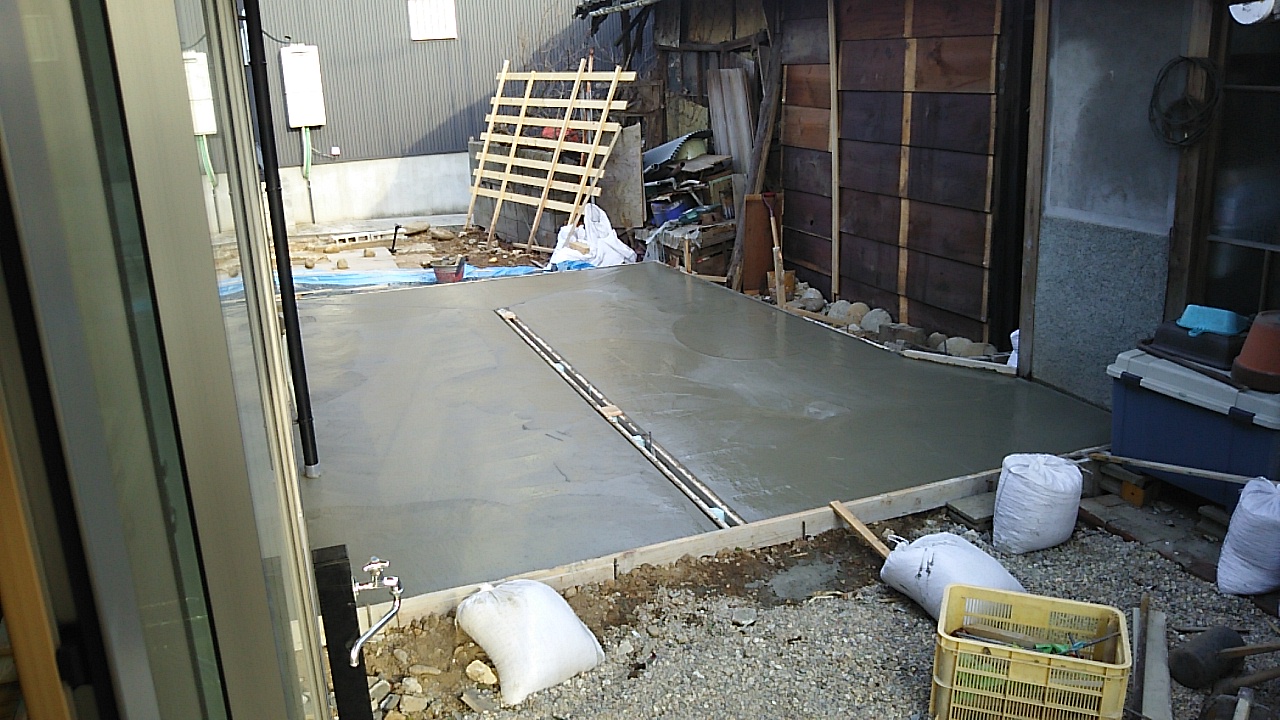 庭の一部に土間コンクリートを打設しています。