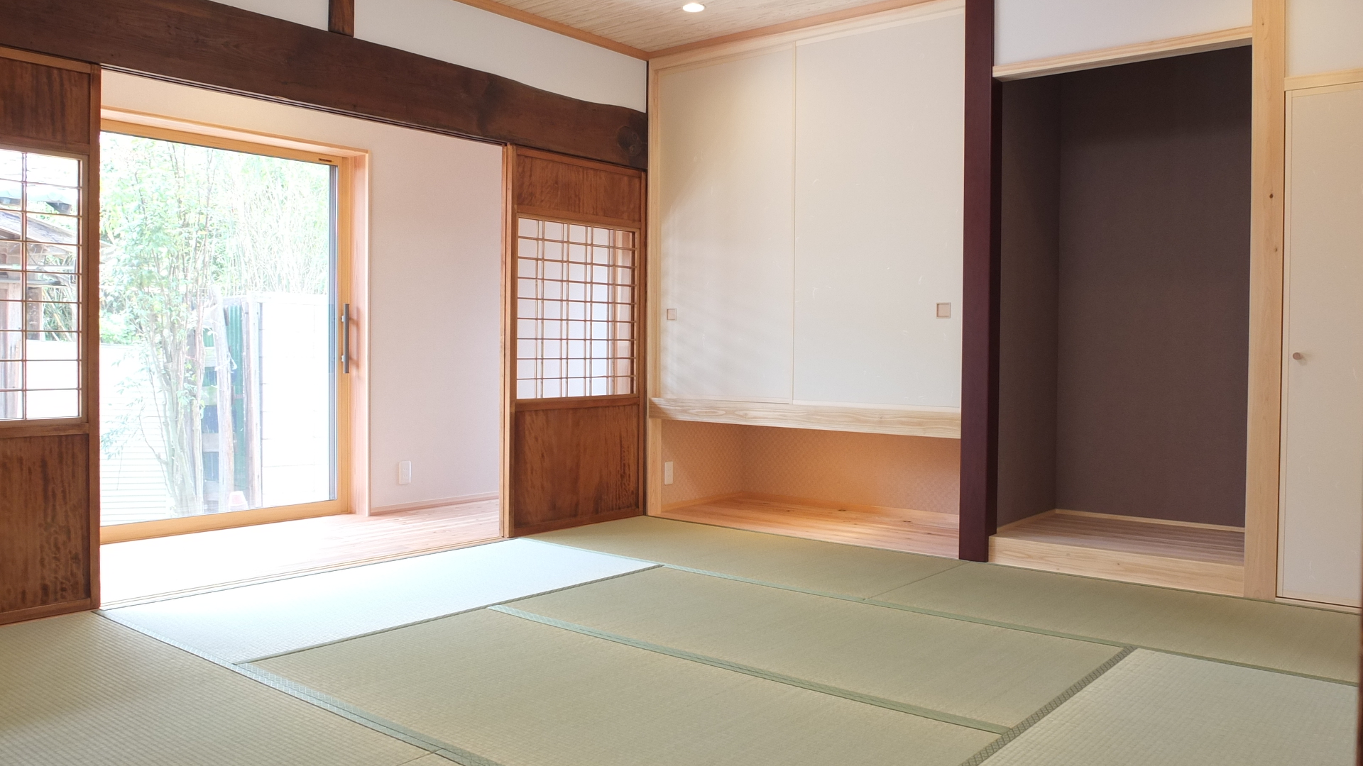各室の床材が張り込まれています。天井と差鴨居の低さも相まって、だいぶ落ち着いた空間になることが感じられます。