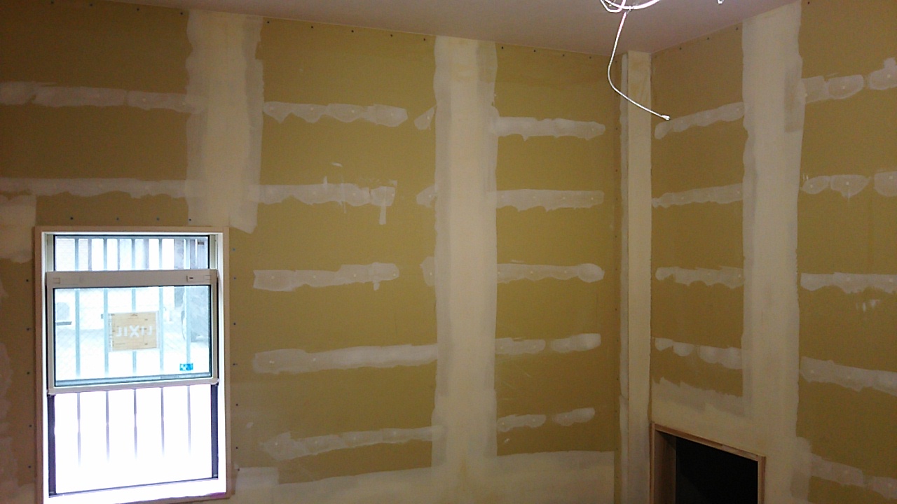 内装下地ボード張り。だんだん部屋らしくなってきました。