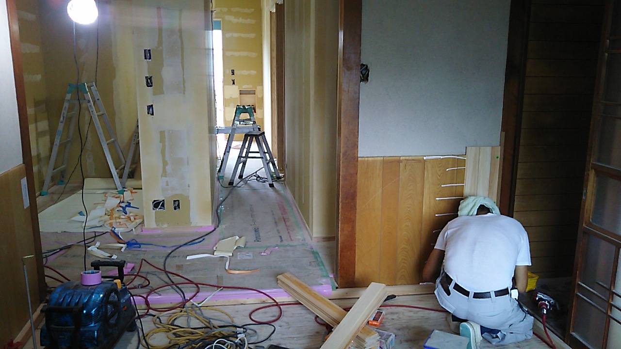 かと思えばまだ、大工さんが仕事をしている部屋もあります。