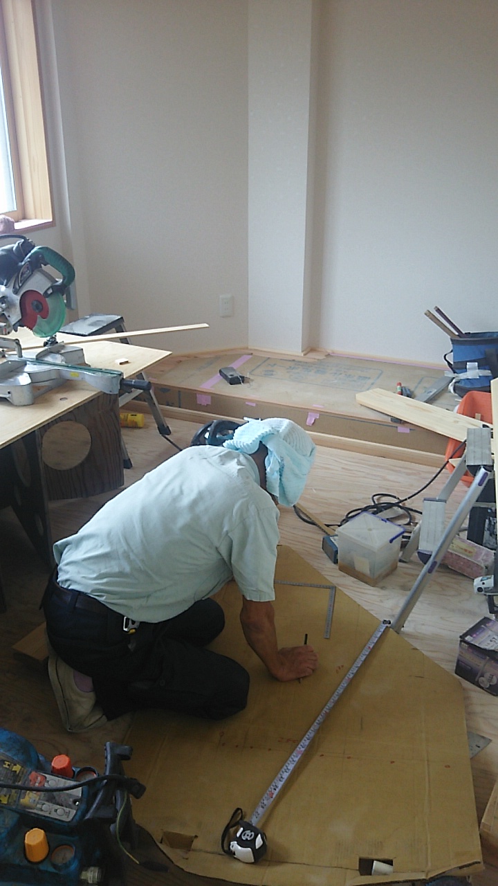 框に沿ってピタリと床板が張られました。さすがは職人技。
