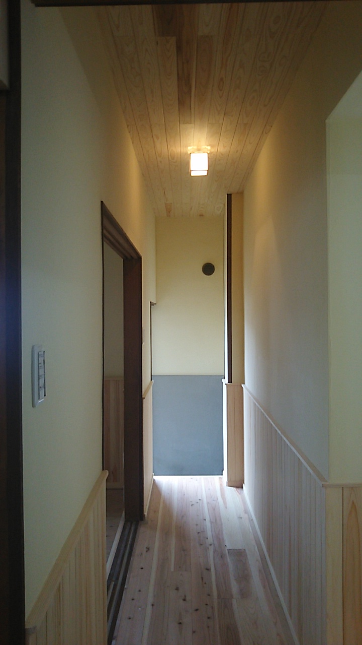 杉の天井、桧の腰板、と元々の日焼けした柱の濃い茶色と相まってレトロモダンの雰囲気を醸し出しています。