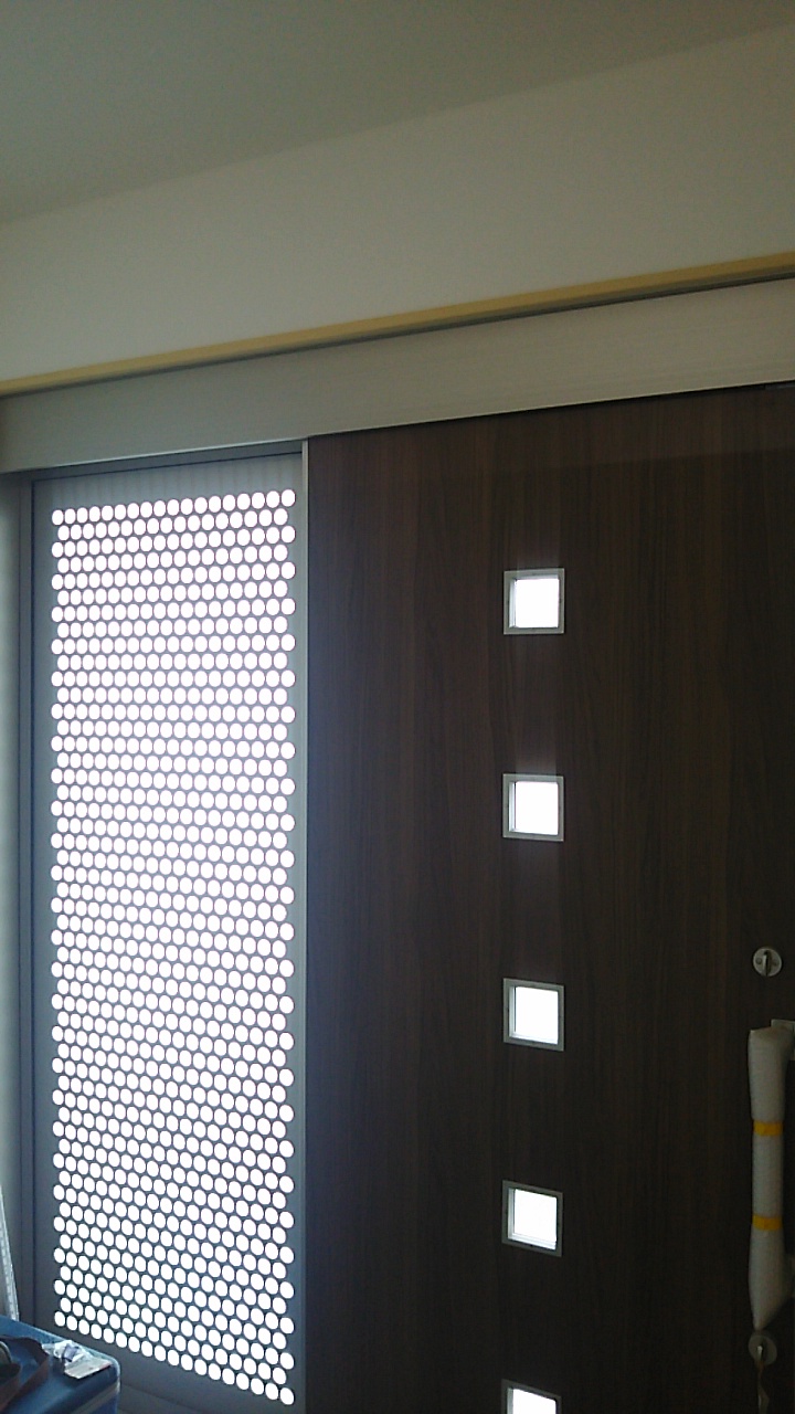 玄関の養生もめくってみました。ガラス越しに入る光で一気に明るくなりました。