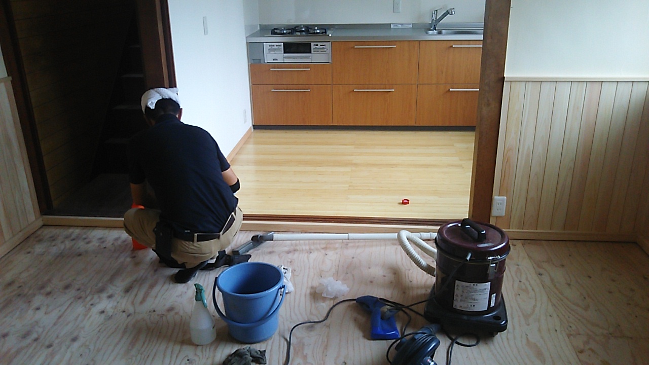 内部クリーニング工事。工事現場をキレイに清掃して仕上げます。