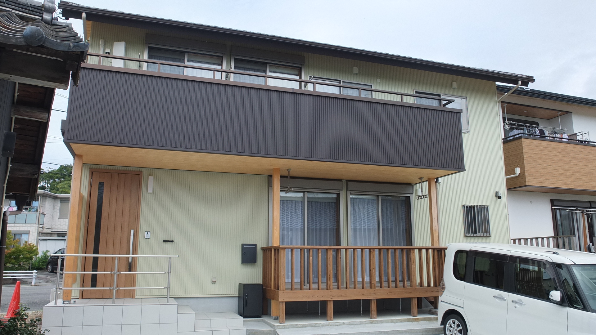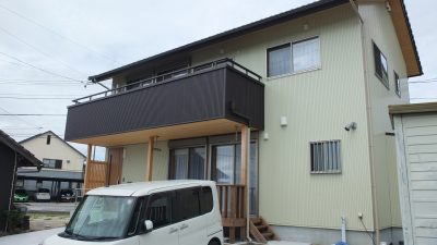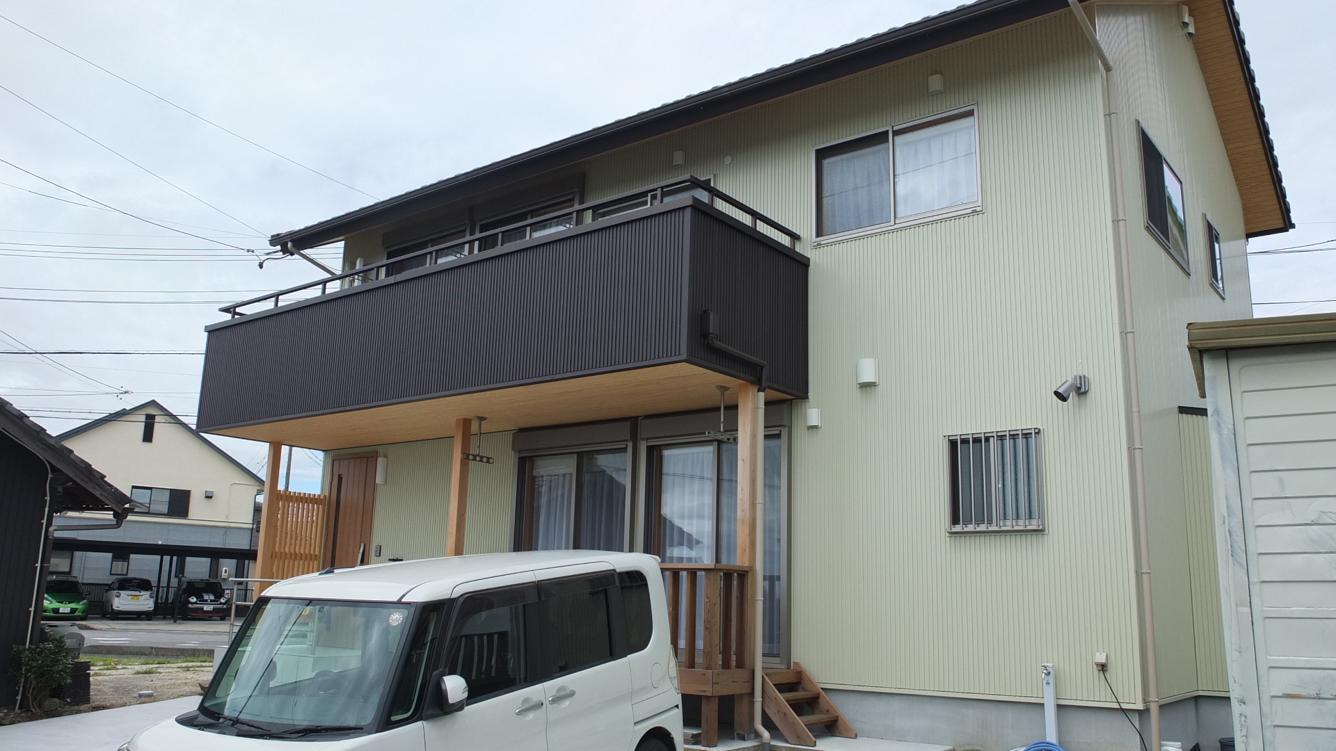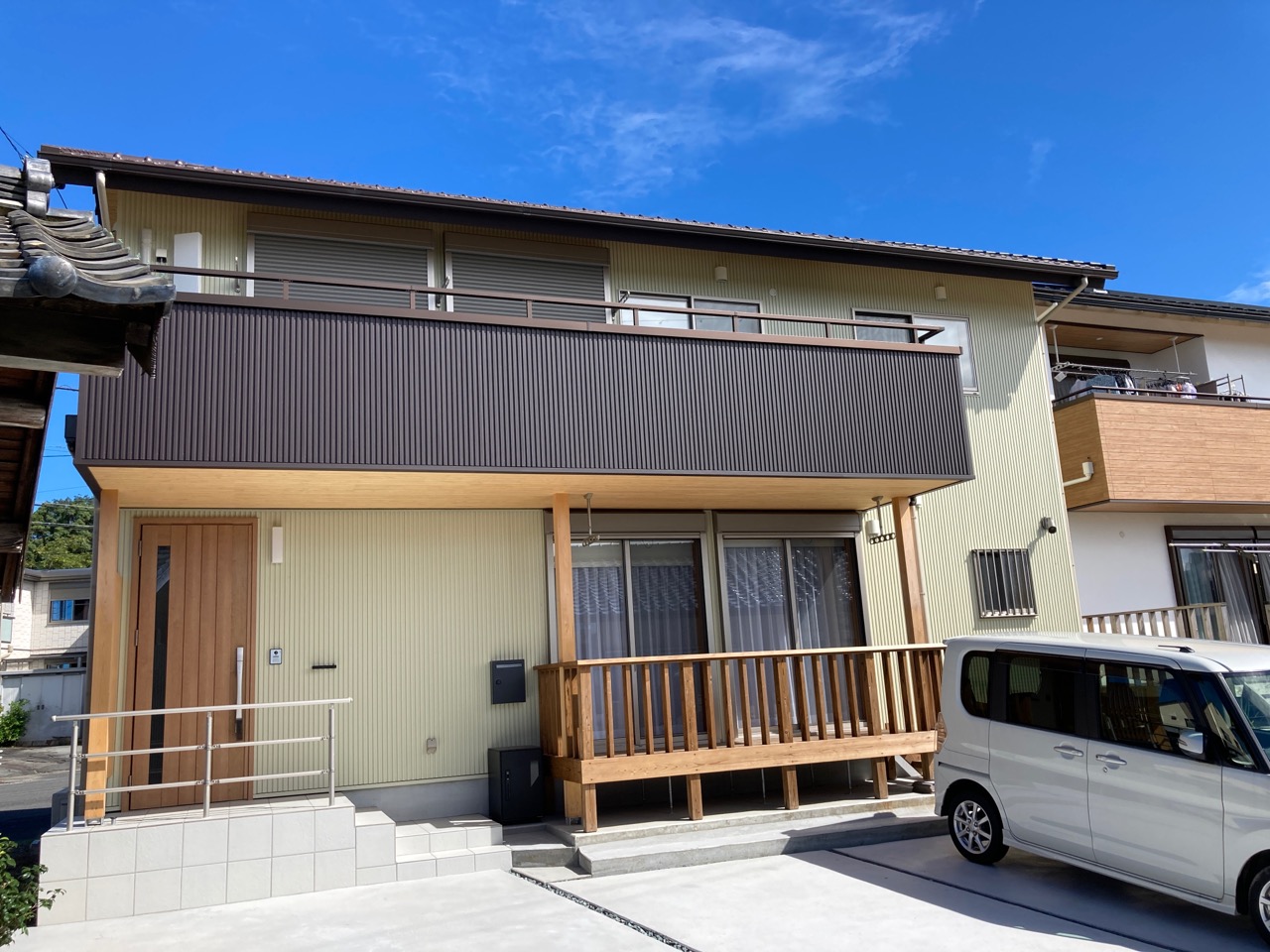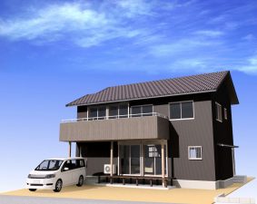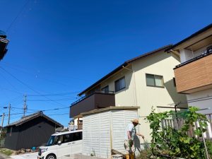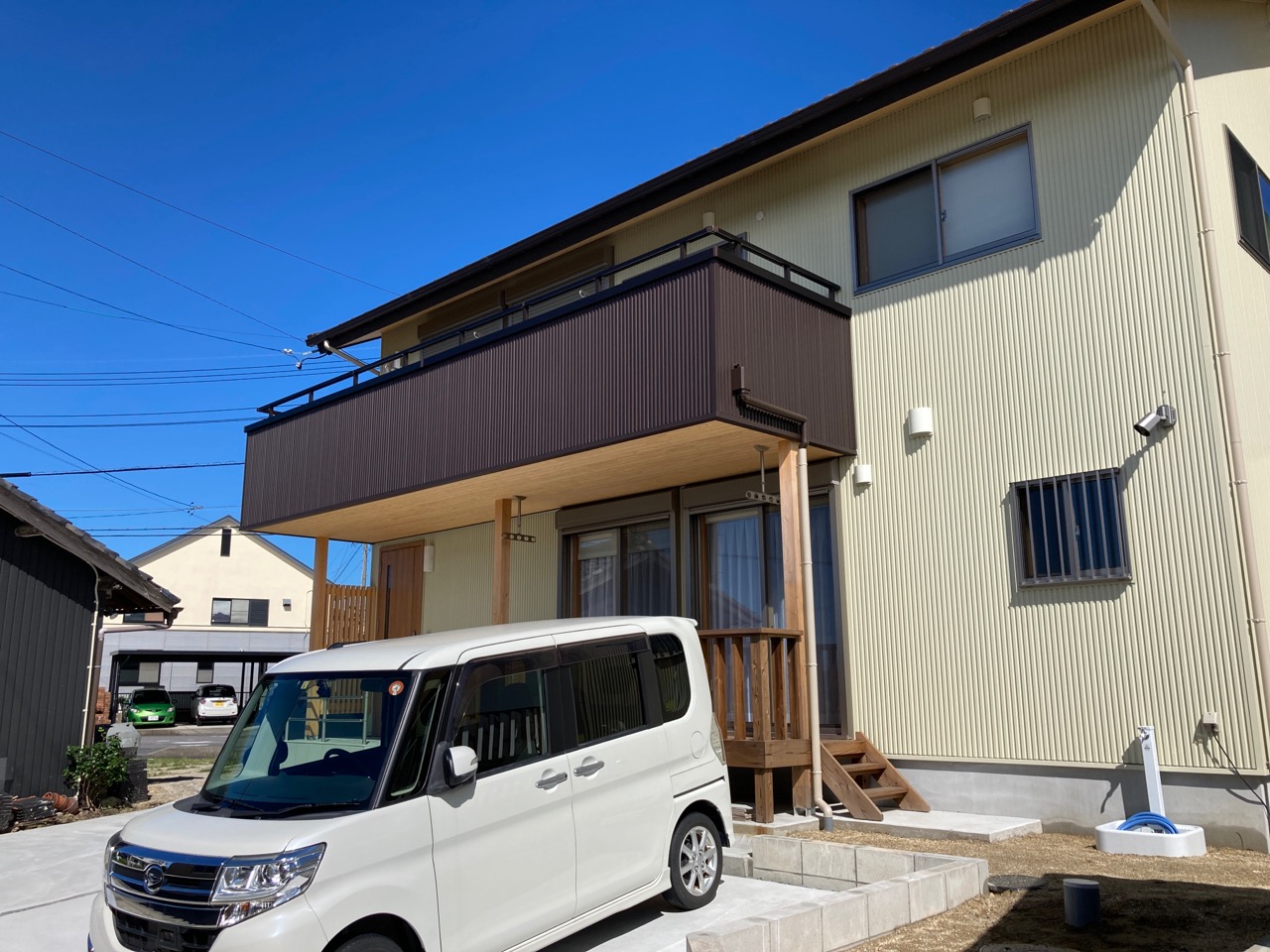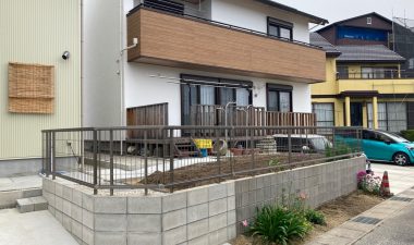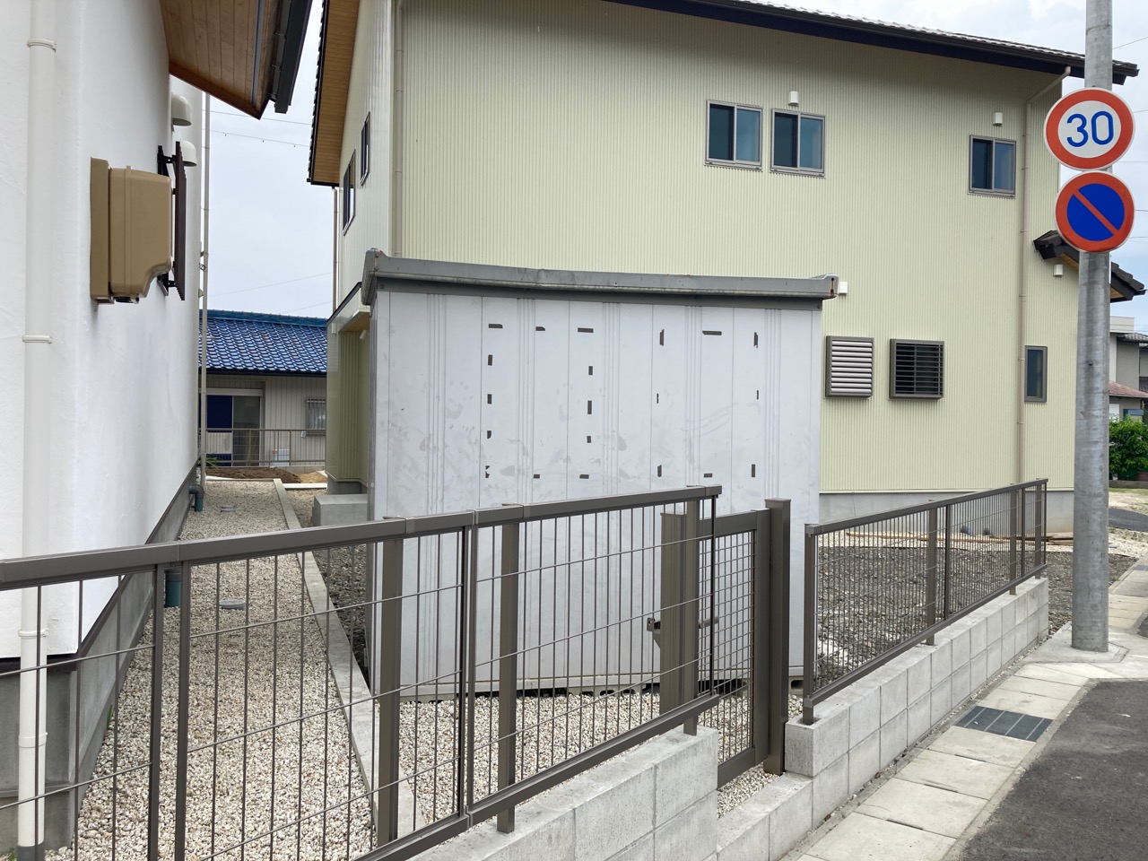 外構工事も終了したので外観の写真を撮影しつつ、残りの細かいお打ち合わせにやってきました。東隣のmi様は庭で家庭菜園の世話の真っ最中。こうして緑があると外観として絵になります。