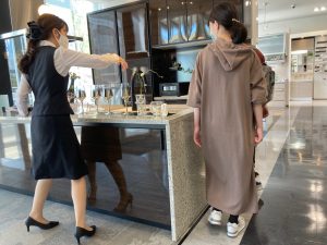 百聞は一見に如かず。掃除のしやすさや材質、見た目などまずは体感してみて設備の特徴をつかんでいきます。