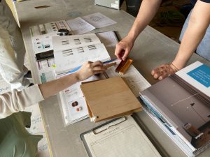 考えてみれば過去ミノワでご検討されたすべての建築主様はこうやって見学会場にご来場され、材質感やスケール感を参考にして自宅の建築に臨まれたことだと思います。過去から未来へ連綿と続くこの流れに何か感慨深いものを感じます。