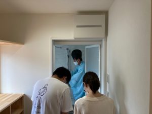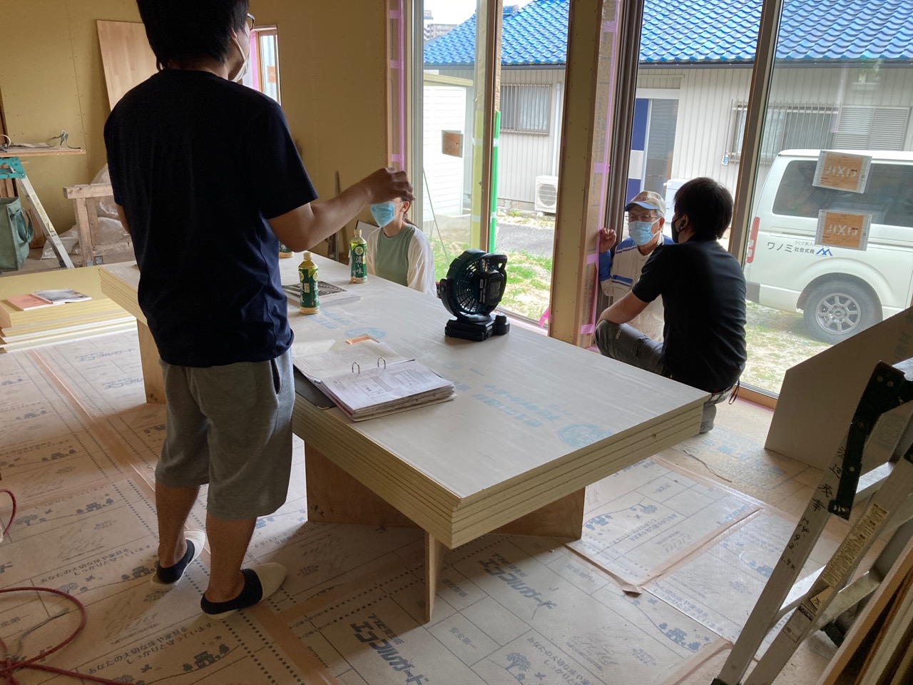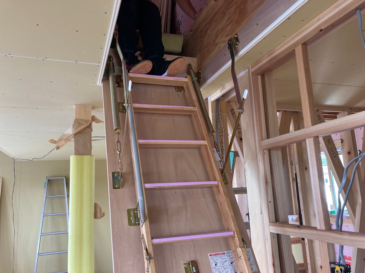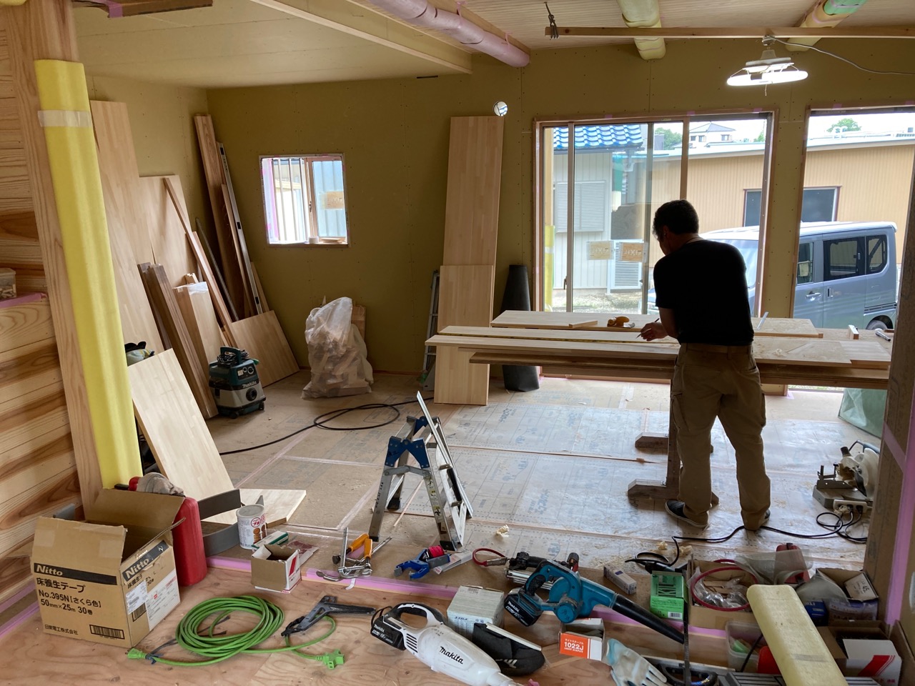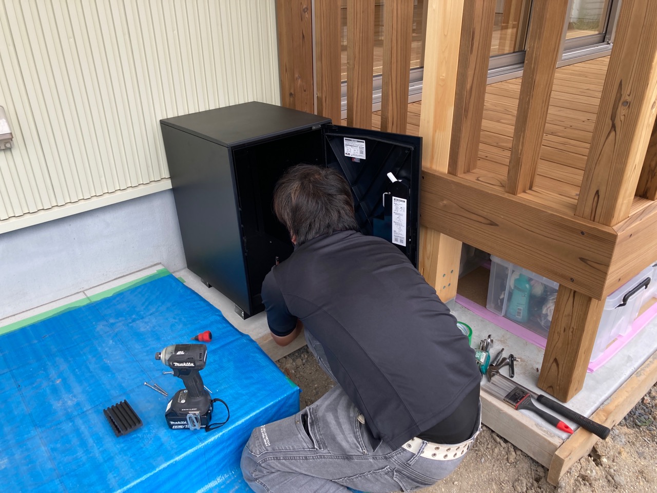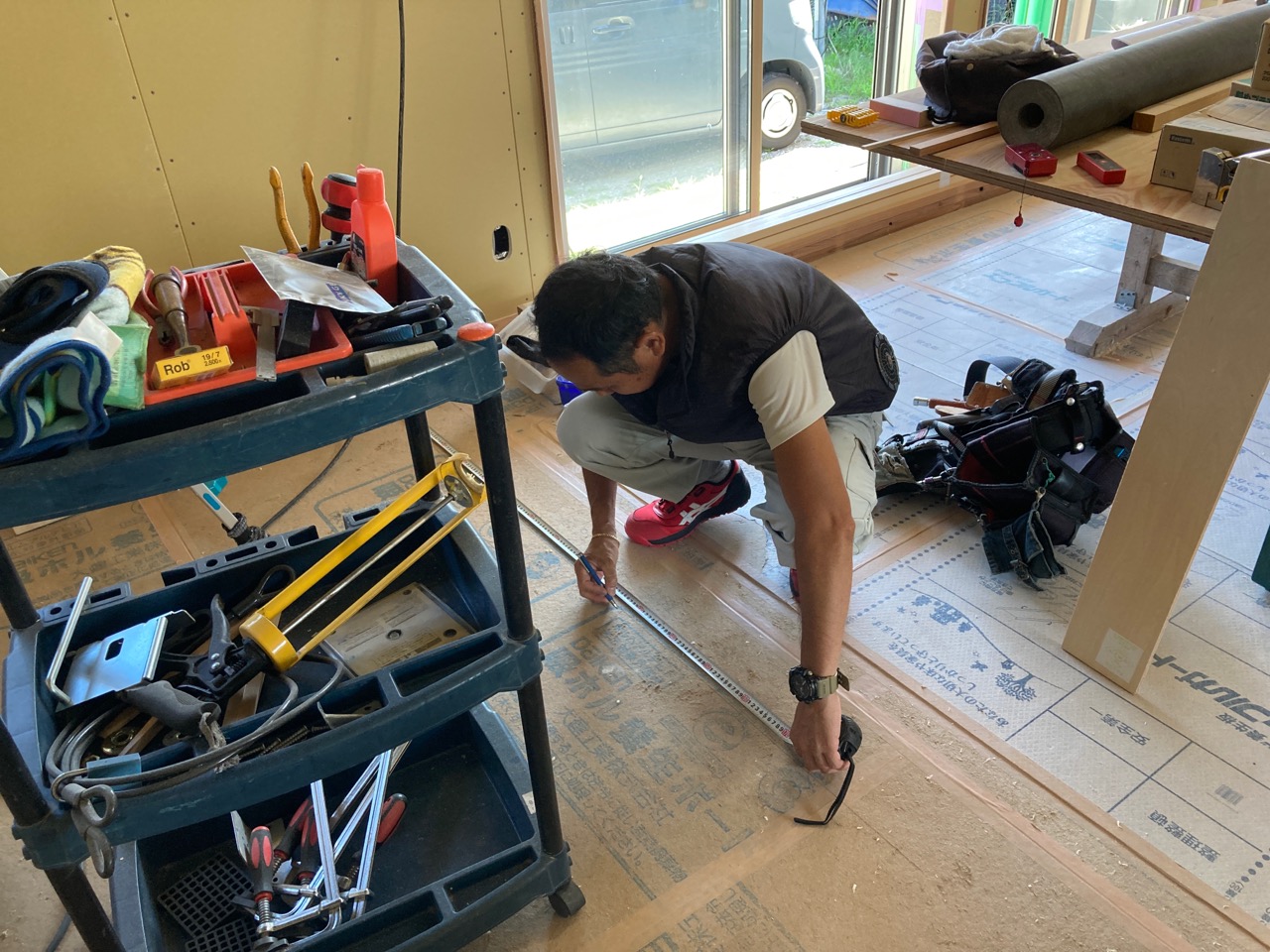 現場内も設備設置の真っ最中。本日もいろんな業者さんが入り乱れカオスの状態は続きます。来週8月11・12日に行われる現場完成見学会に向け慌ただしくなってまいりました。