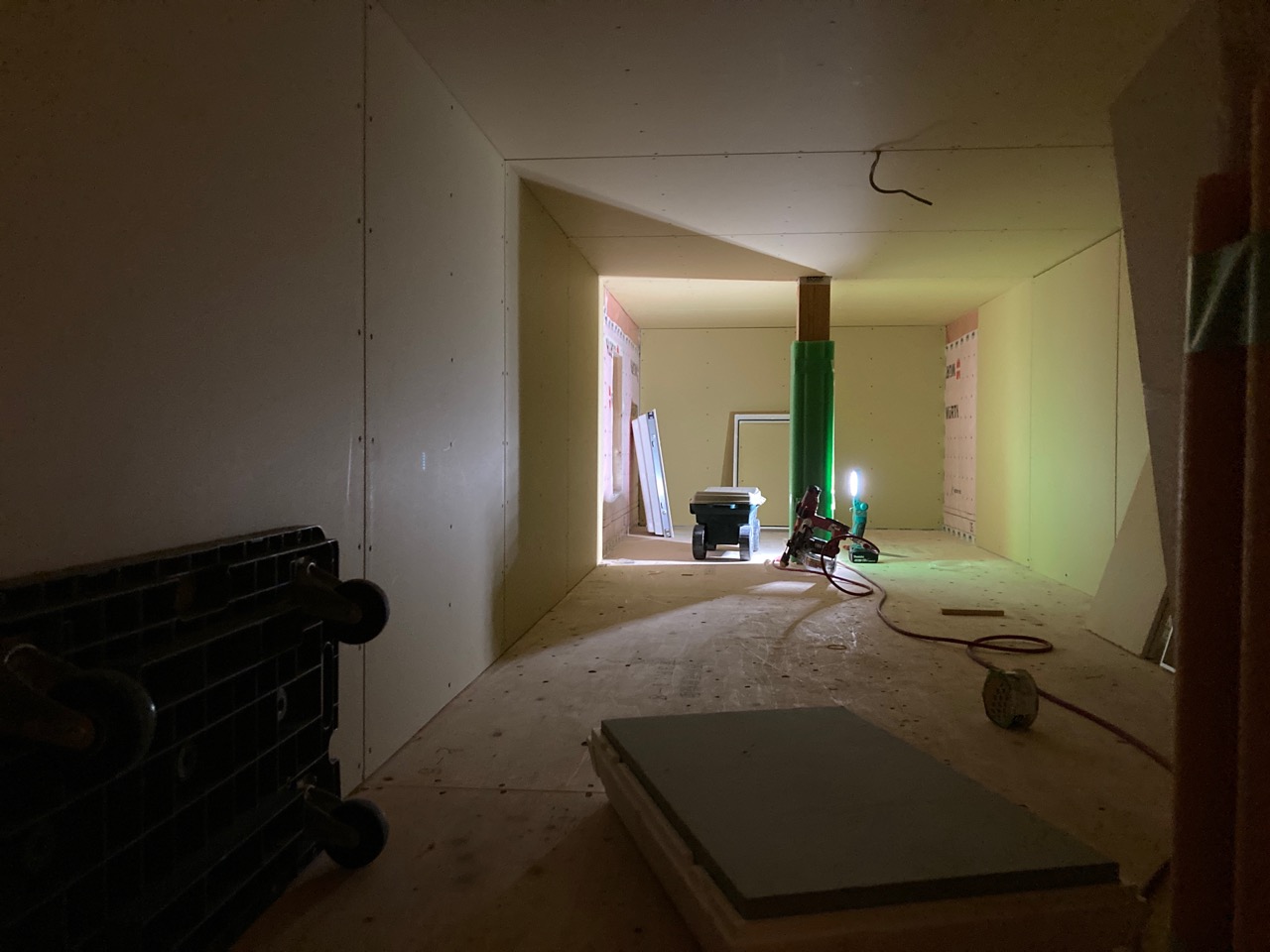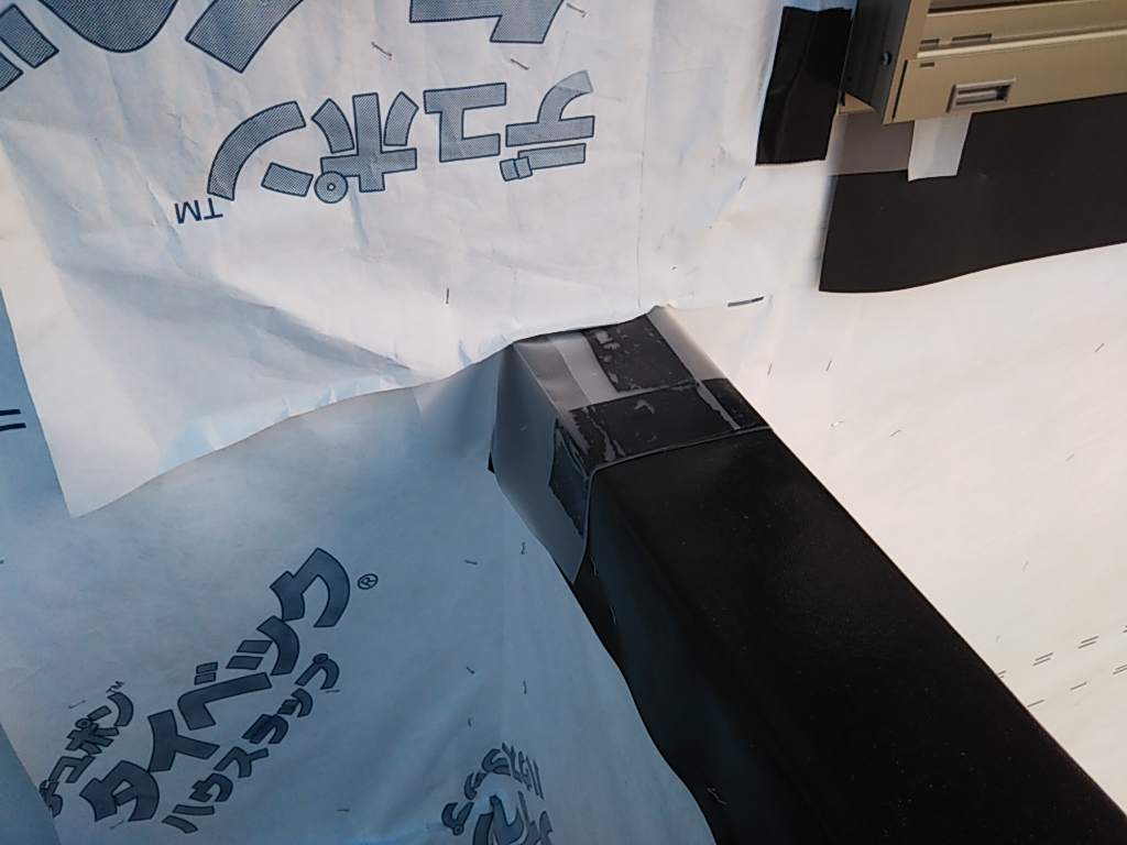 少し前にy本さんに苦労して貼ってもらった現場の記憶も冷めやらぬうちにまたまたまた筆者の現場に入ってもらいました。その表情には若干の諦観が見て取れます。まあ、こういうモノだと開き直ってもらうしか無いですな。