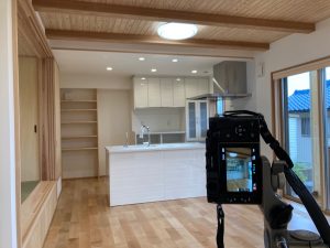 そんなこんなでもカメラと三脚片手に現場内を歩き回っている時は、現場をつくり終えた達成感に浸れる貴重な時間帯です。と同時に『ここはもう少しこうやって収めた方が良かったかな』と、図面を引いた本人にしか感覚的に認識できない部分に気づいたりする自問の時間帯でもあります。はからずも見学会で多数のお客様に対し、ミノワ建築主OBとして経験談をお話ししてくださいましたmi様は『住宅とは衝動買いだ』と名言を残されましたが、営業打合せをし、方眼紙を前に迷いながらスケッチをして、現場ではどのように細部を収めるか、とずっと現場に携わっていると住宅建築は『葛藤、妥協、是正、改善』の終わりのない繰り返しだと改めて思います。