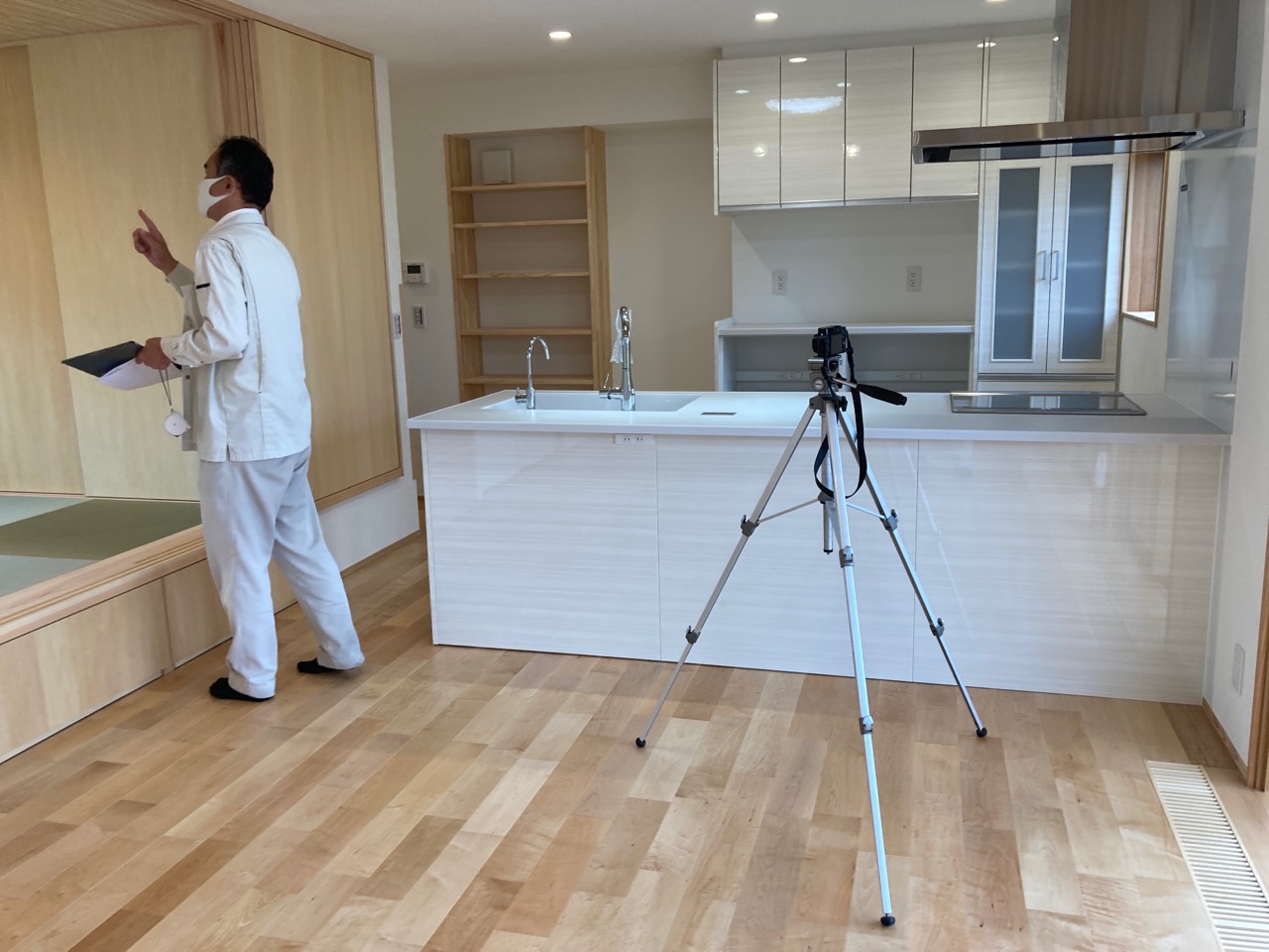 本日はお引渡しも行いました。ズラリと並べた取扱説明書の簡単な説明を行い、いざ本キー入刀。長らくお待たせしましたがいよいよお引渡しです。・・・先日お子様が誕生されたばっかりという事もありお忙しいため本格的な荷物のおいおいにする、という事でした。すぐ隣がお祖父様のmi様宅という事もあり、現在はそちらに仮住まい。こういう時に親戚が近くに住んでいる、というのはありがたいですね。
