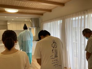 最後にお札入りのミニお社をお渡しされました。ほとんど仏間神棚をつくる事が無くなってきた現代の住宅、こういった小さいお社を奉っておくというだけでも良いものだと思います。ご家族を末永く守護していただけることでしょう。