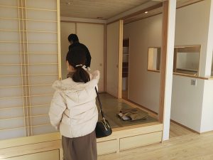 本日はi様に瀬戸市sn様邸で開催された完成見学会にご来場いただきました。先に建築されたお客様の住宅で『何か参考になるところはないか』と、模索を続けます。