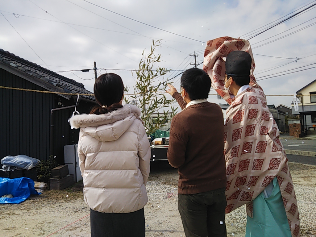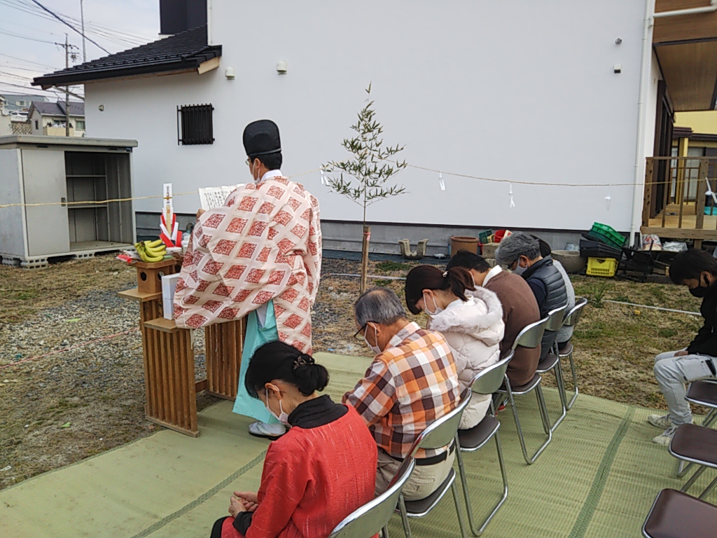 本日は地鎮祭が執り行われました。神主さんの設営を手伝ったのですが、2月中旬とは思えない暖かい気温でむしろ暑いくらいで、上着を1枚脱ぎ2枚脱ぎながらの作業となりました。