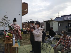 祝詞奏上、四方祓い、玉串奉奠つつがなく進み無事に地鎮祭を終えました。