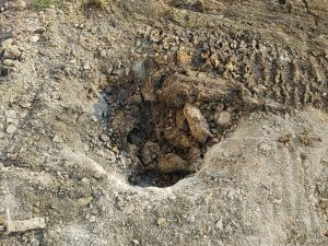 地盤改良工事が完了。ところどころ古墳の発掘現場のように孔が空いています。この地下に約2.0mの長さのコンクリート杭が敷設されています。その数およそ40本。地盤を強固にしてこれから建築される住宅を支えます。文字通り『縁の下の力持ち』