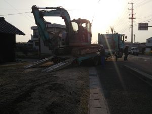 一仕事終え、重機をダイナミックに積んで帰っていきました。