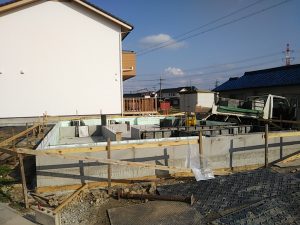 住宅の基礎の配置と高さがおぼろげながら見えてきた状態です。