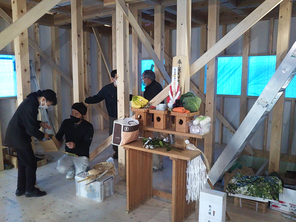 古には都に仕え、主に土や石を扱う仕事に就く職人に『左官』、木材などを扱う職人(今でいう大工)に『右官』という官職が与えられていたと聞いた事がありますが、こうしてみるとなるほど上棟式というのはまさに『神事』なのだという事を実感できます。