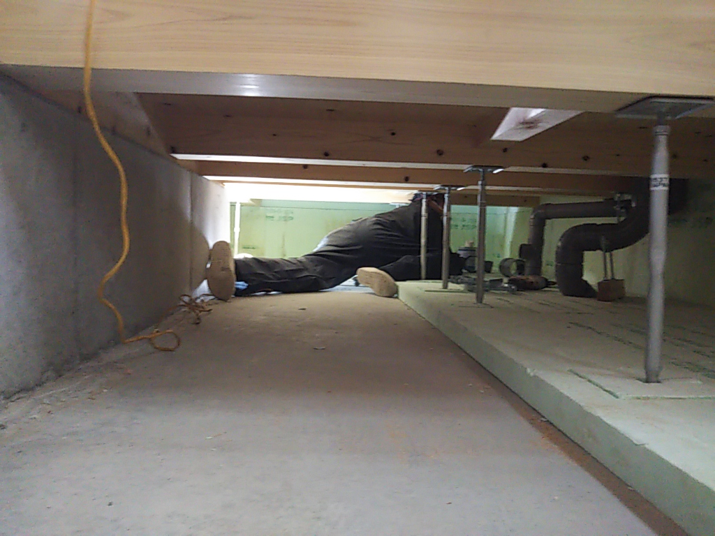 設備業者さんが床下、天井裏配管に入ります。狭くて大変そうですが頑張ってお願いします。