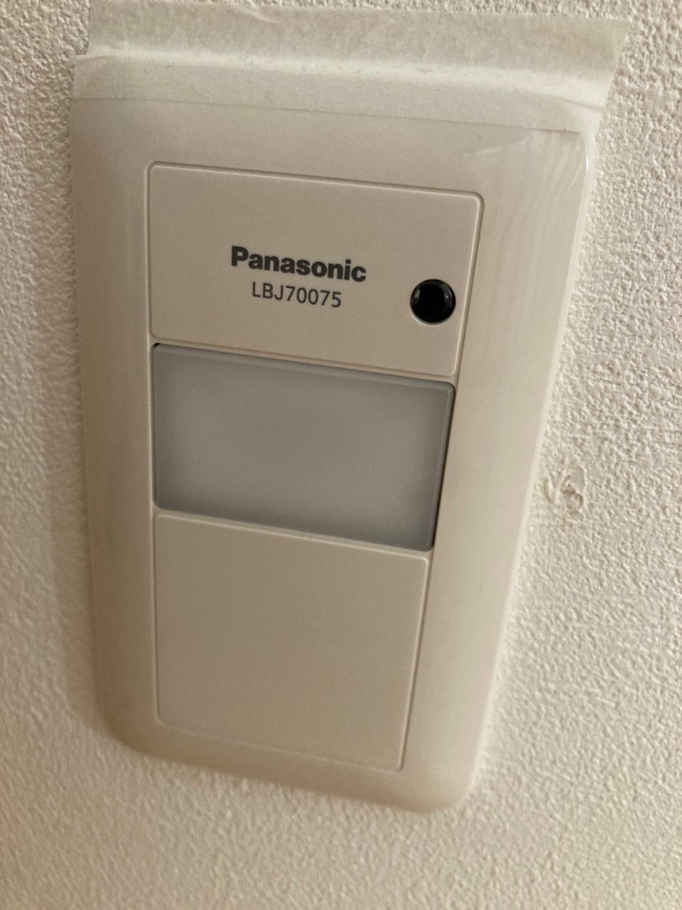 センサー付きフットライトに関するご相談です。今回は明暗センサー付きフットライトを取付けていました。周囲がある程度以下の照度に達するとセンサーが反応してライトが点灯するという照明器具です。2階の階段下り口付近に取付けてあります。夜間に階段を降りる際、足元が明るくなるようにと、段差のある部分に有効です。