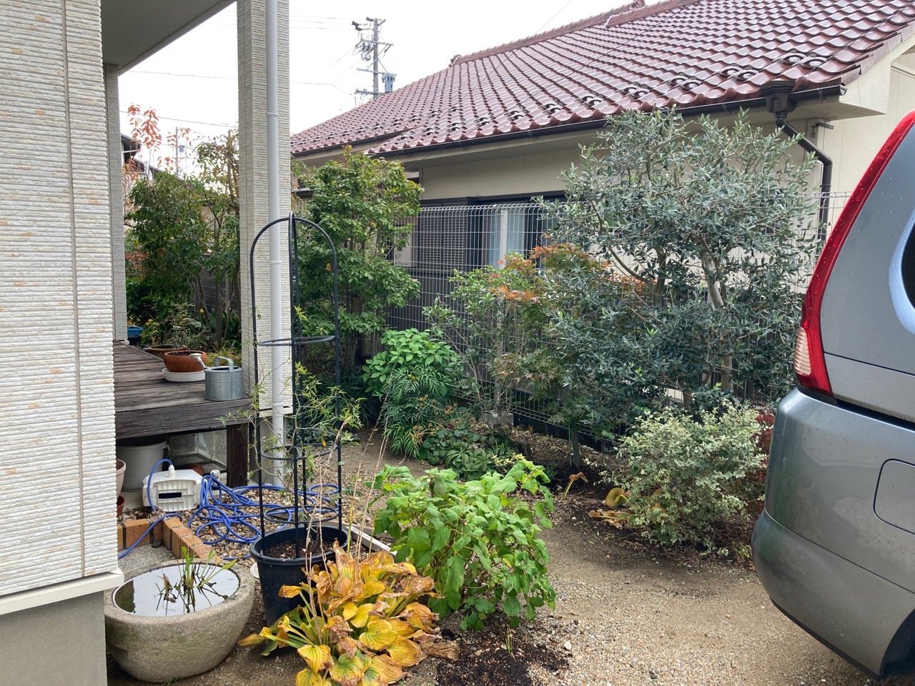 もともとは駐車場でした。車両が毎日通行していたので土の締固めはかなり硬いことが予想されます。